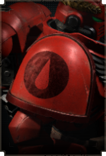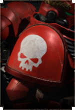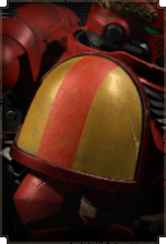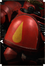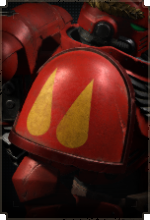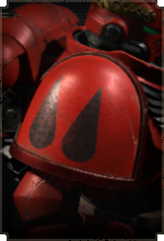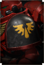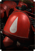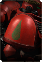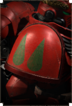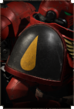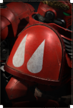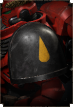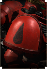Здесь размещается эмблема Кровавых Ангелов, а также дополнительные знаки отличия для сержантов, ветеранов и командного состава.