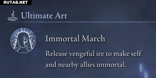 Вечный марш — это невероятно мощная способность. Она воскрешает всех союзников в довольно большом радиусе, а тем, кто ещё жив, даёт защиту от смерти на минуту. Ваша команда пала? Не проблема! Вас возродила Преследующая благодать, а у союзников осталось по три полоски здоровья? Неважно! Повелитель ночи запускает сокрушительную атаку? Просто нажмите кнопку «не умирай»! Нужно срочно добить босса, потому что шторм уже накрывает его? Всё под контролем! Застряли далеко в шторме, потому что церковь оказалась на другом конце карты? Активируйте искусство — и все эти проблемы исчезнут. Более того, есть реликвия, которая добавляет к способности взрыв призрачного пламени, что делает её ещё полезнее для зачистки точек.