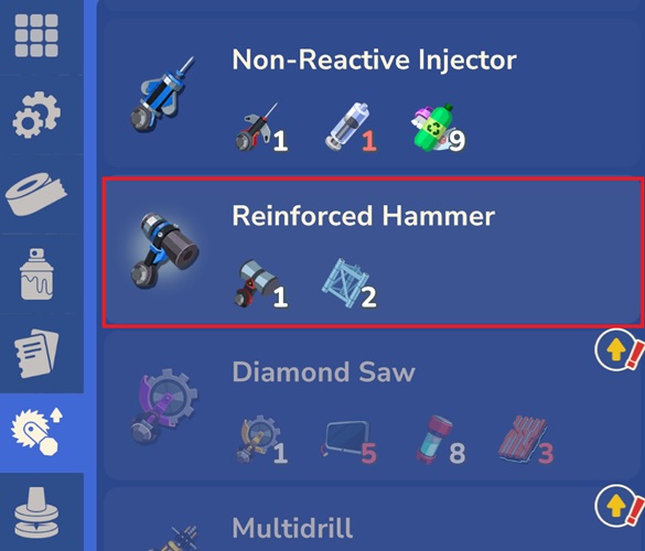 Усиленный молоток — молоток из ковкого железа со стальным наконечником. Может пробивать твёрдые препятствия. Простота, служащая высокой цели.