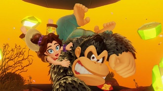 Фрагменты очень медленно следуют за Донки Конгом и могут перестать двигаться (или даже вернуться на исходную позицию), если он уйдёт слишком далеко. Чтобы этого избежать, слегка наклоняйте левый стик вперёд — это замедлит героя и позволит осколкам не отставать.