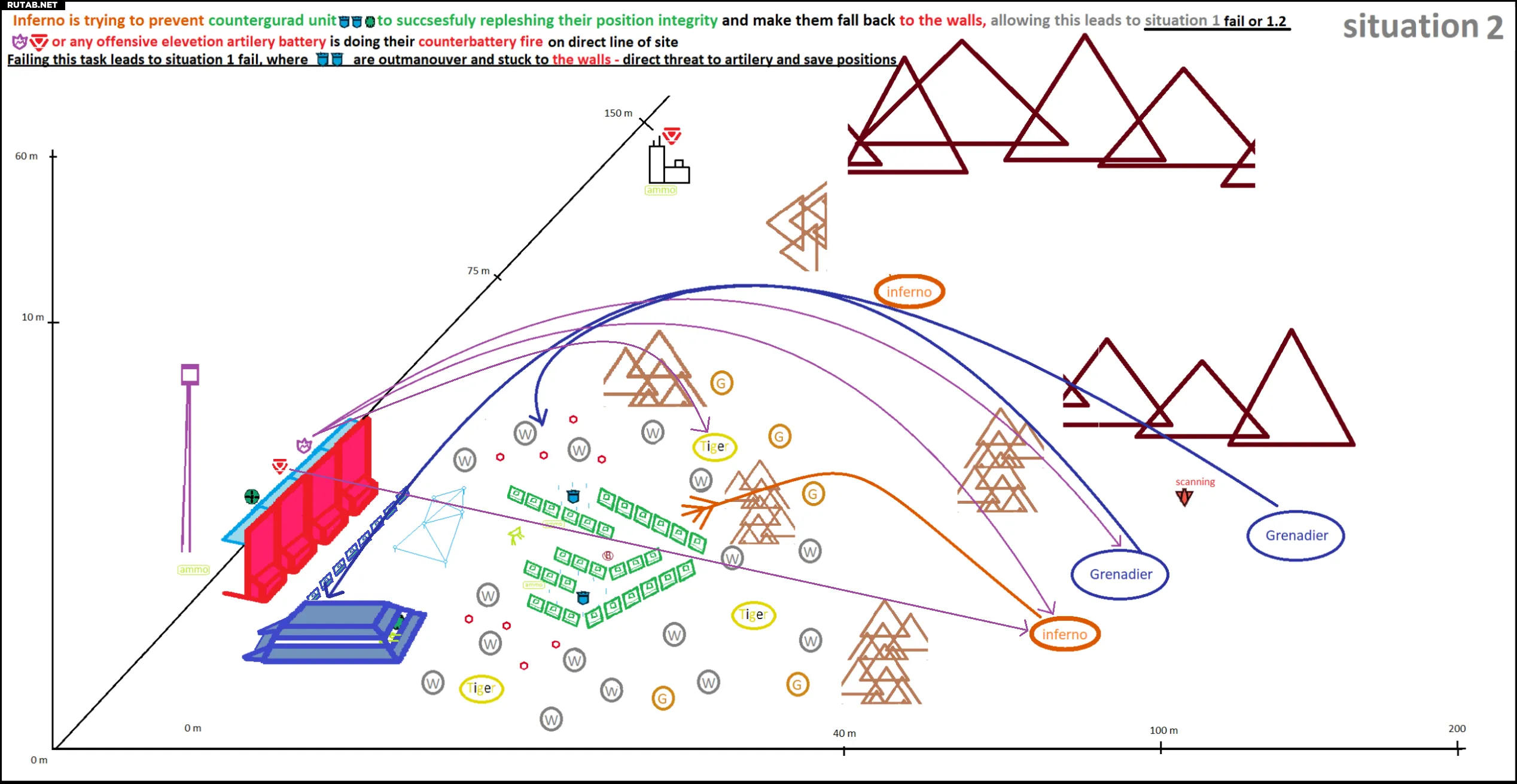 Чтобы предотвратить это, мы используем возвышенные позиции для CBF, откуда они могут уничтожать InaG на прямой видимости. При поддержке BD в пропорции 2:1 они также помогают отражать атаки «Тигров».