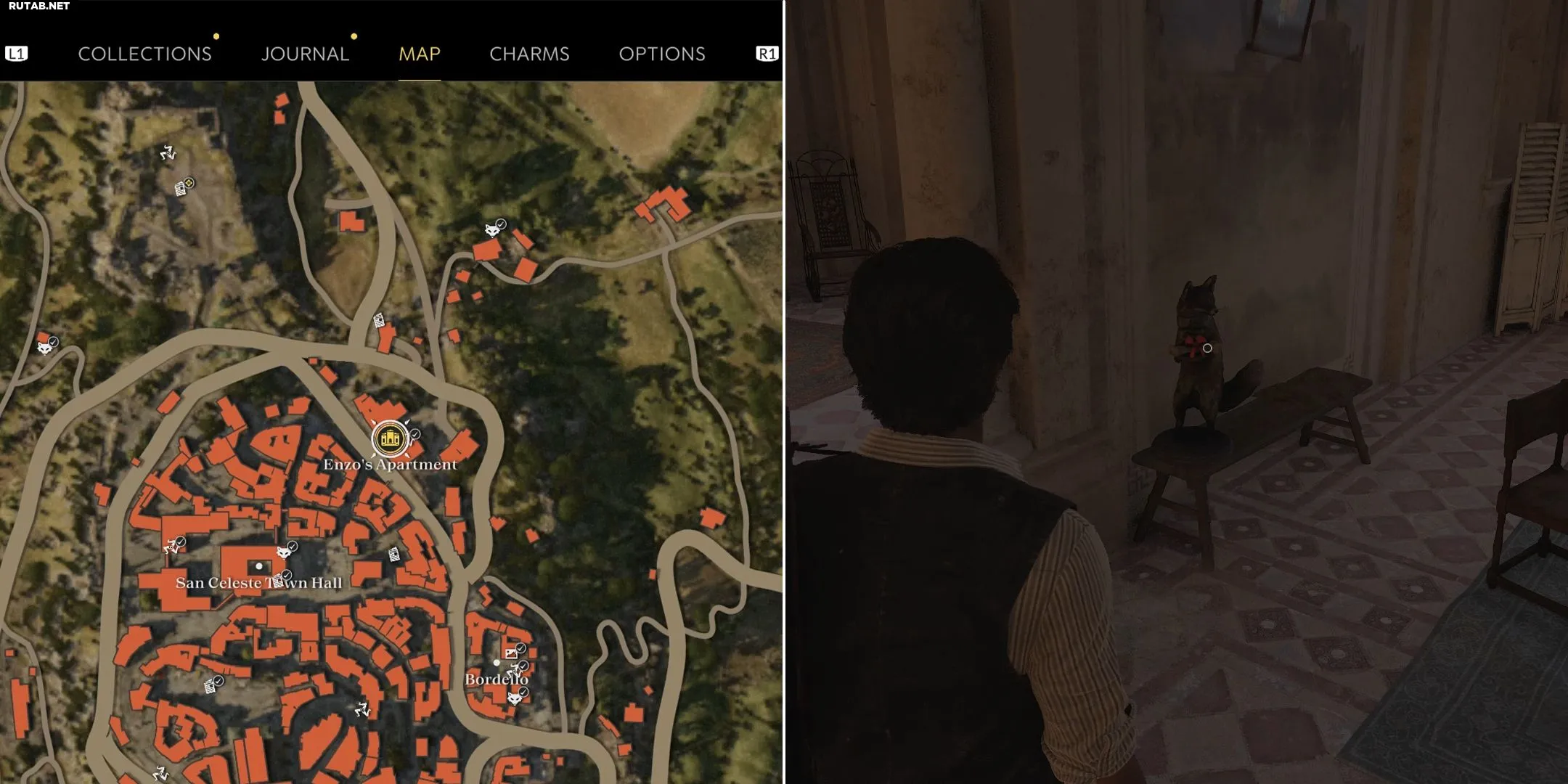 Двигайтесь на северо-запад, ближе к Сан-Челесте, и зайдите в небольшой сарай рядом с домом — статуэтка Загадочной лисицы будет стоять на столе.
