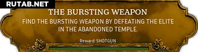 Находится в начале Акта 4, Уровня 1. Общее время прохождения должно быть меньше 40 минут. Развернитесь в стартовой зоне, перепрыгните через пропасть (прыжок, рывок, прыжок) и пройдите в комнату с оружием.