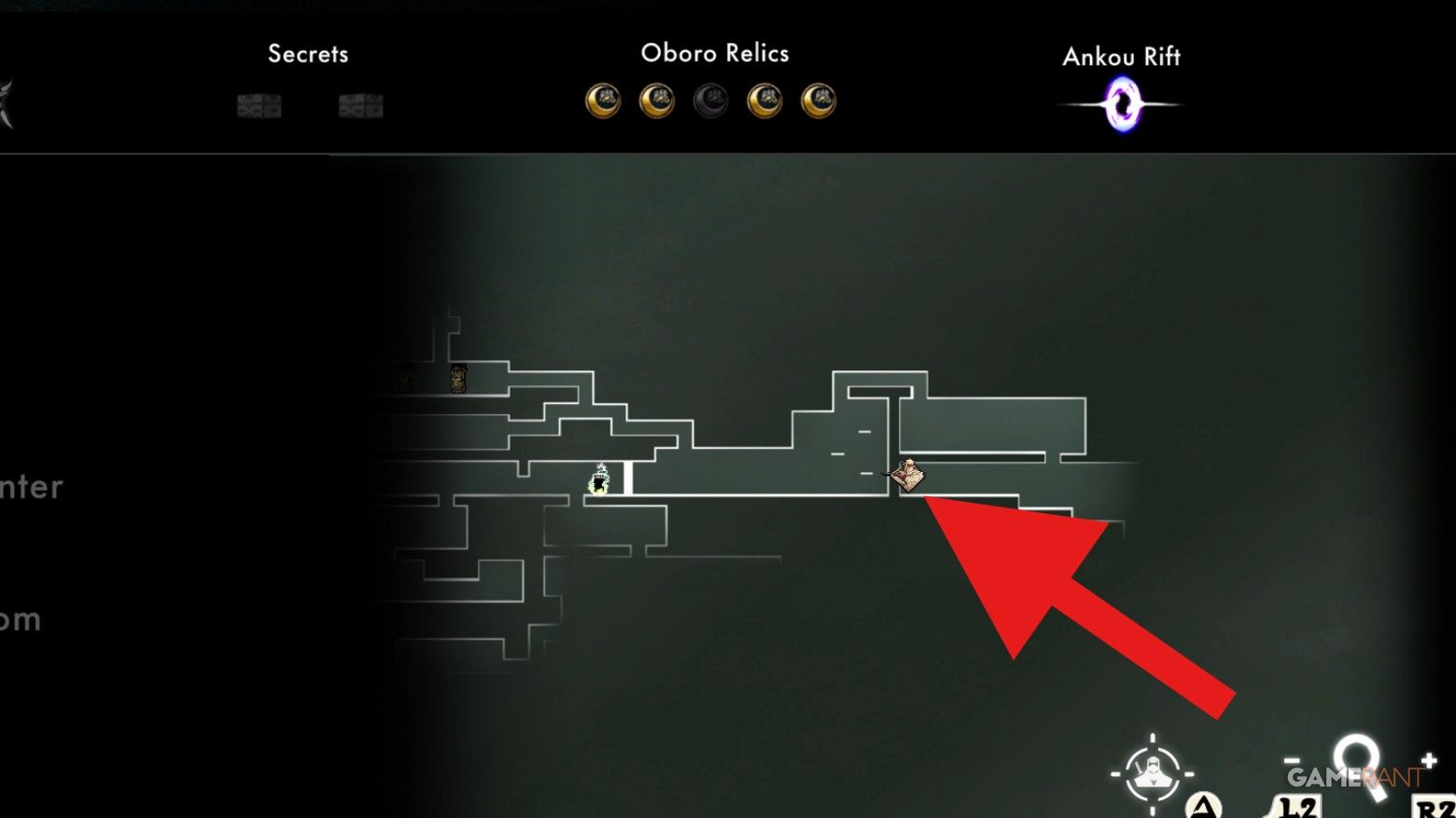 Немного после точки сохранения Осадная башня вы найдёте зелёный барьер Ёкая, который можно разрушить с помощью Погружения Меча, чтобы открыть секретную зону с сложным испытанием на платформинг. В награду вы получите реликвию Оборо и бой с элитным отрядом.