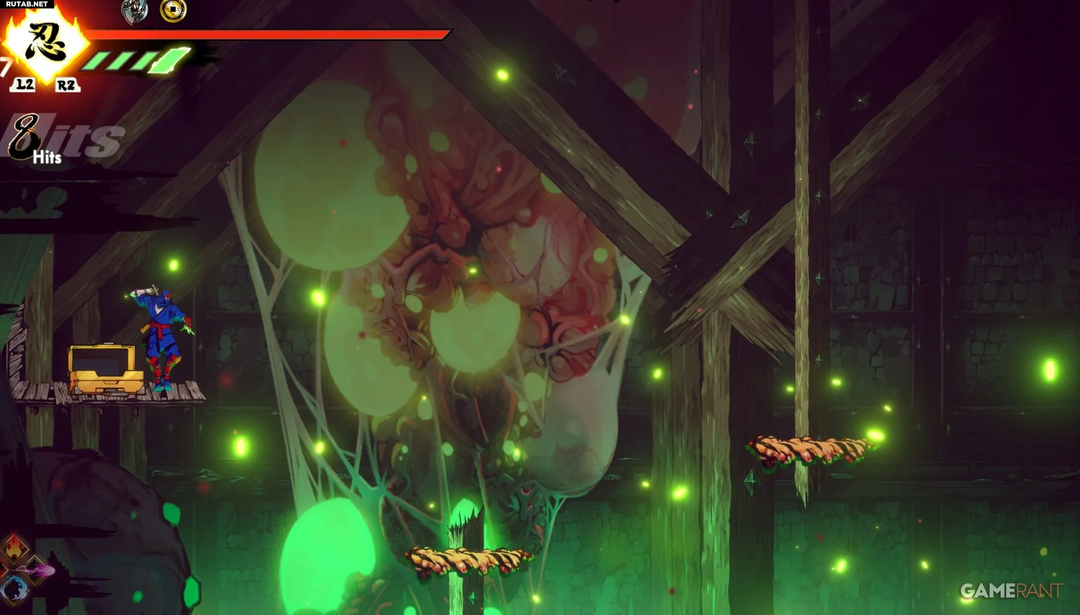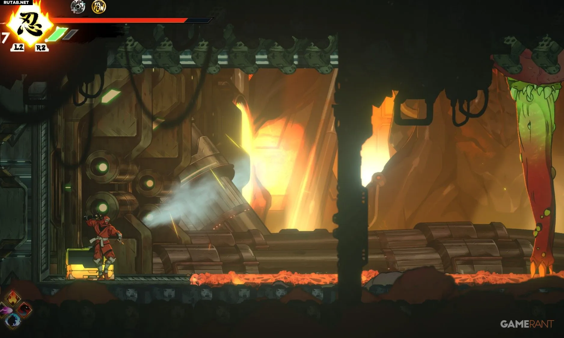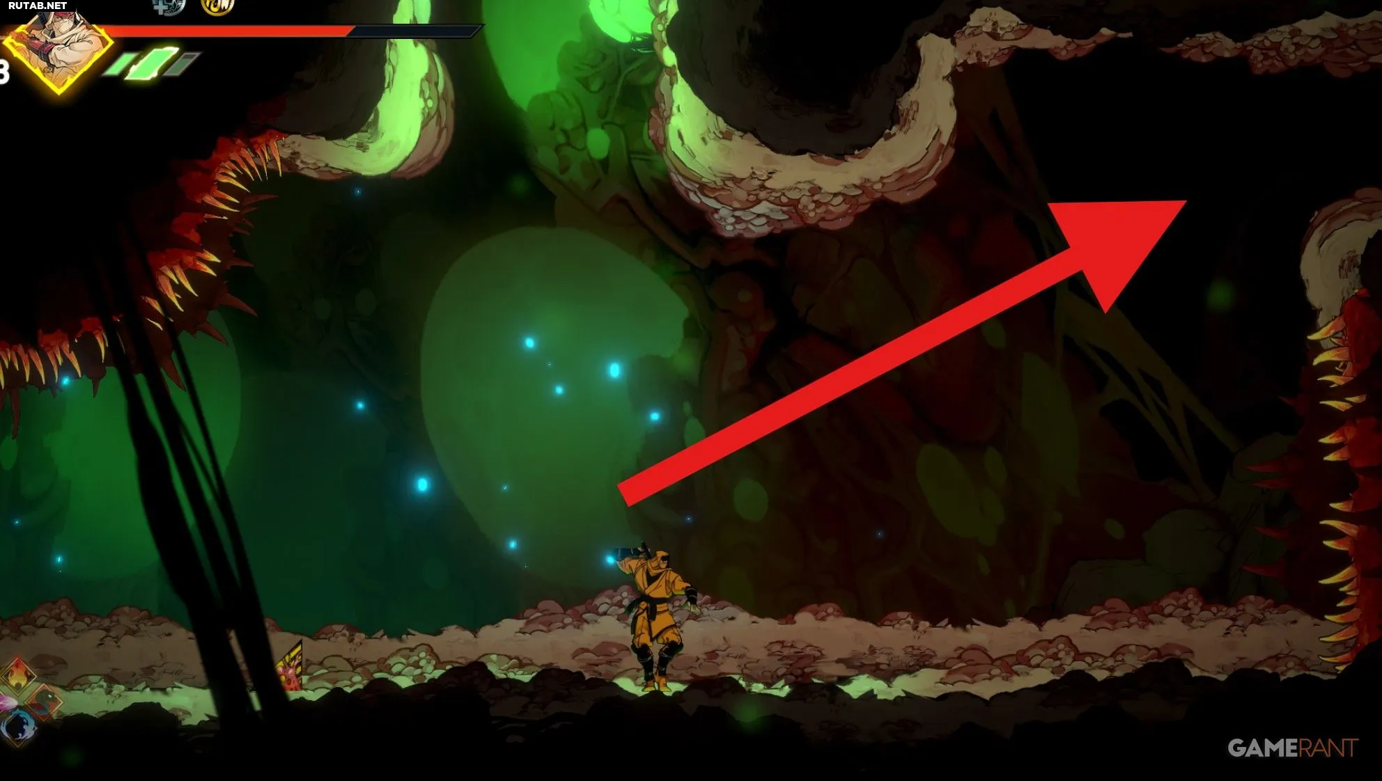 После точки сохранения Замок Руз вы достигнете вращающихся огненных препятствий. Слева перед использованием Когтей ниндзя на стене вы увидите небольшое отверстие, в которое можно пролезть (оно находится прямо под точкой сохранения Тронный зал).