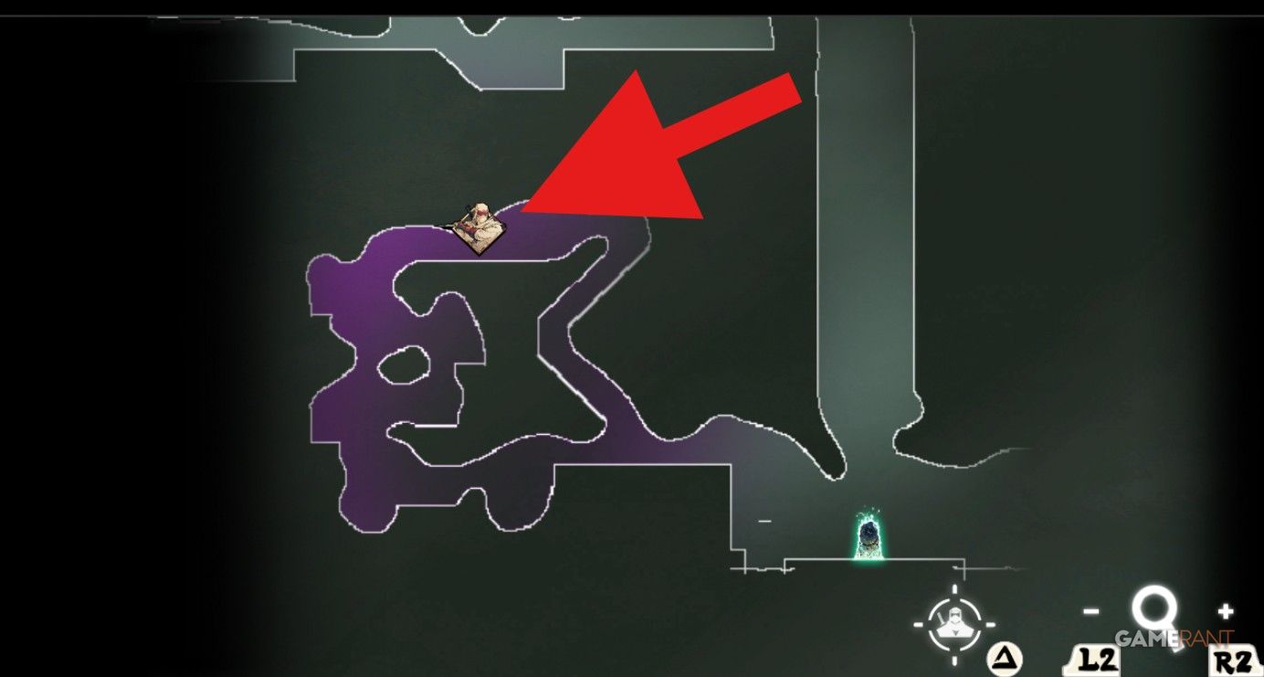 От точки сохранения Горло сделайте длинный прыжок и рывок направо, чтобы найти крюк для захвата, ведущий в область выше. Сундук находится на пути в верхней левой части.