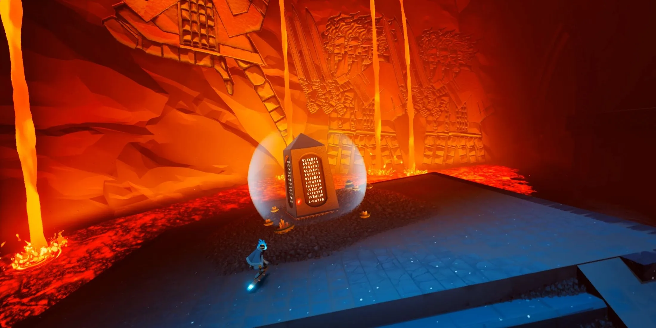 | 2 | Армия красного пламени | Продвигаясь по локации, вы попадёте в большое помещение с лавой и парящими лодками. Используйте лодки, чтобы добраться до правой стороны комнаты и обойти стену — там вы найдёте вторую стелу. | ![]() |