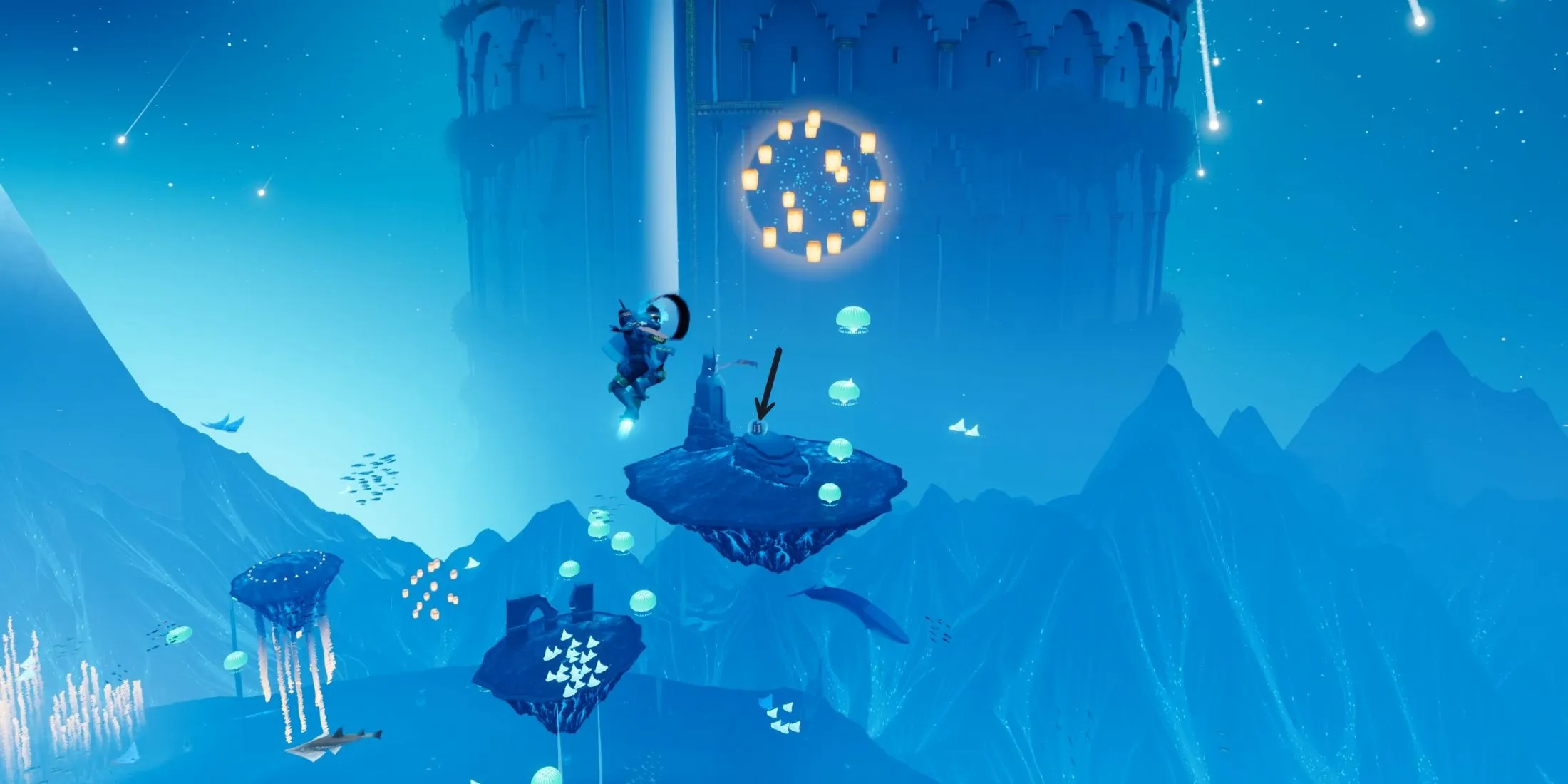 | 4 | Рыбы плывут по небу | После активации источника воды в большом замке обратите внимание на открытое окно. Используйте медуз, чтобы добраться до него и взаимодействовать со стелой. | ![]() |