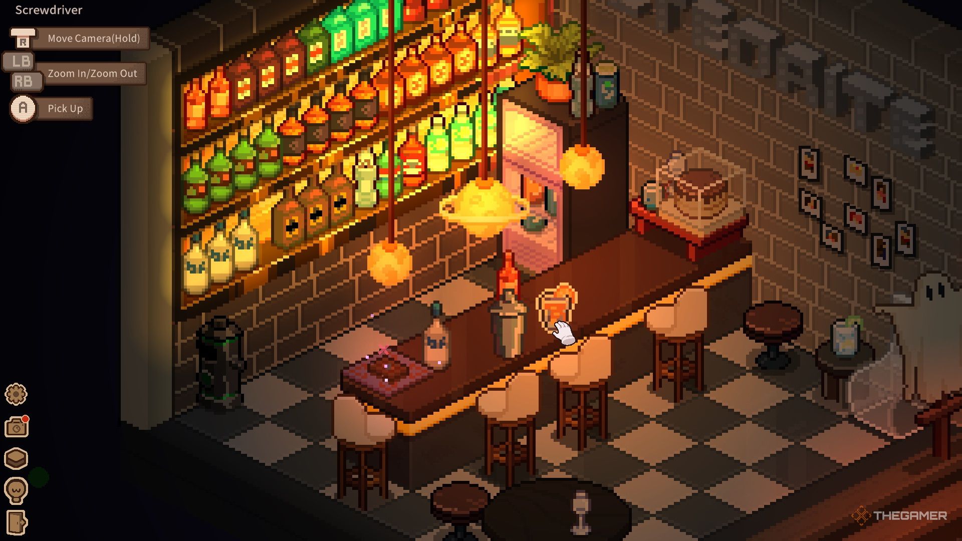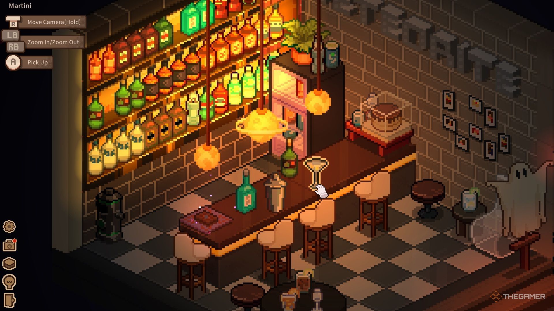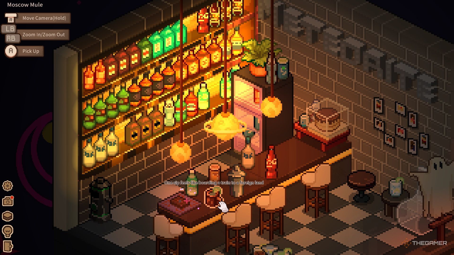 Внутри нужно собрать мусор, расставить бутылки и настроить музыкальные инструменты. После завершения уборки можно начать готовить коктейли. На стойке находятся шейкер и карты таро. Для создания каждого коктейля просто следуйте шагам: