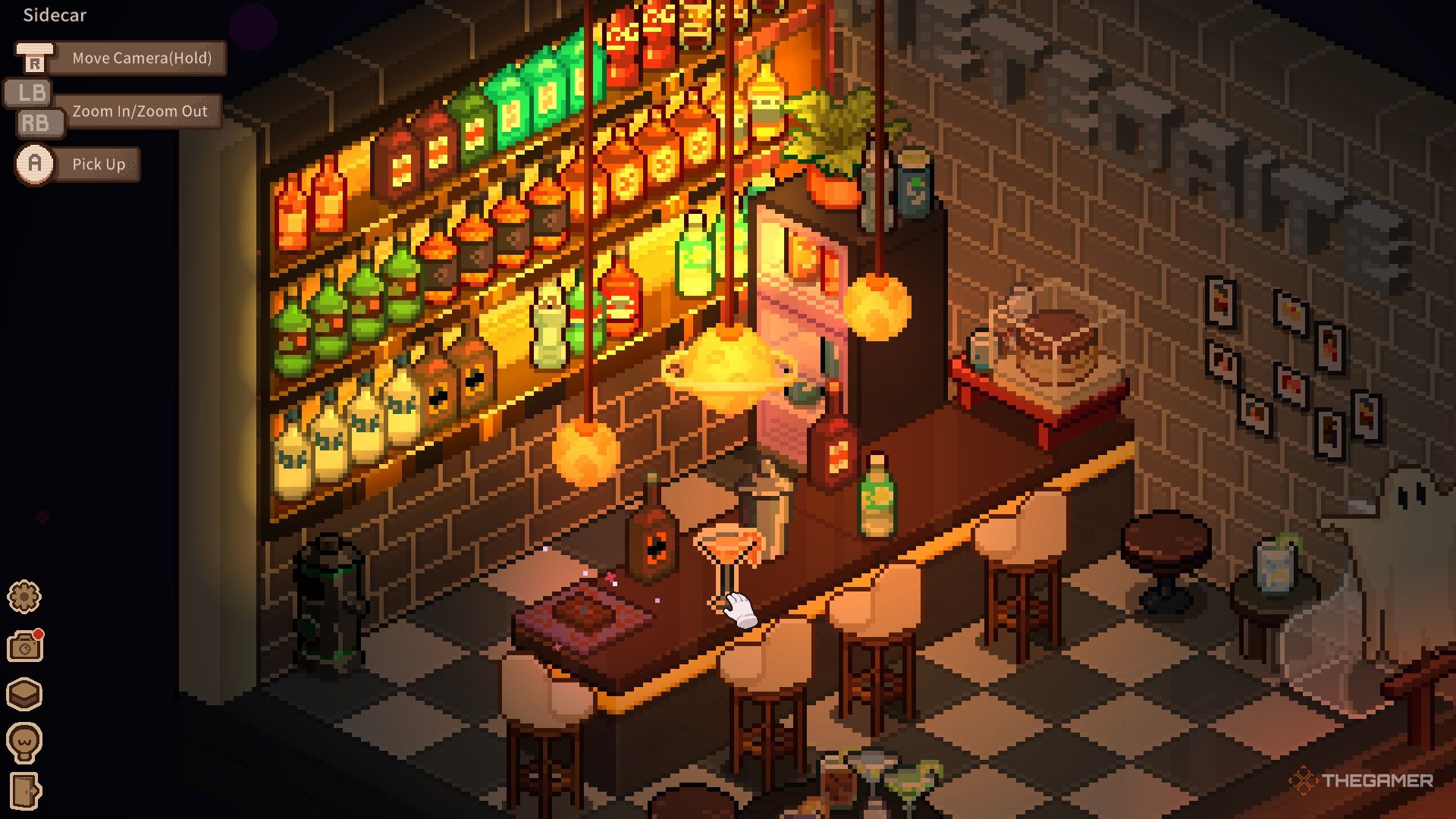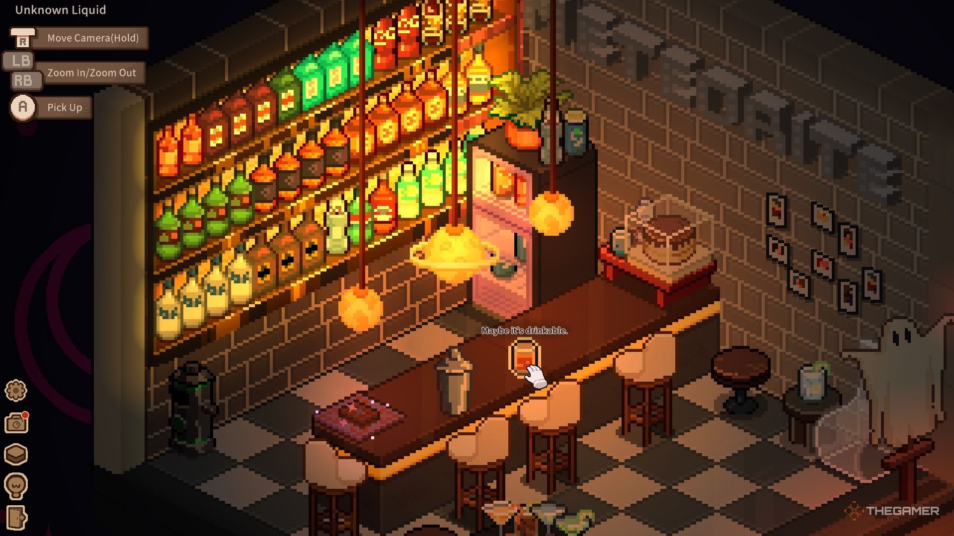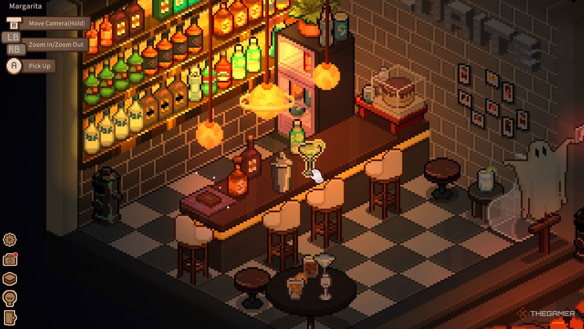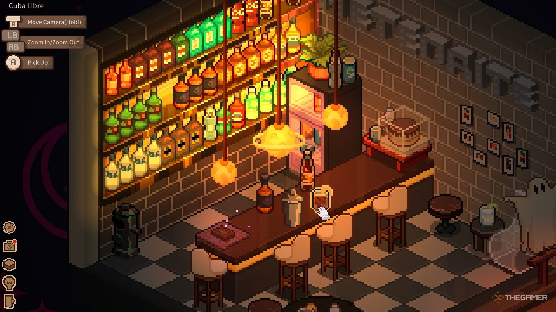Внутри нужно собрать мусор, расставить бутылки и настроить музыкальные инструменты. После завершения уборки можно начать готовить коктейли. На стойке находятся шейкер и карты таро. Для создания каждого коктейля просто следуйте шагам: