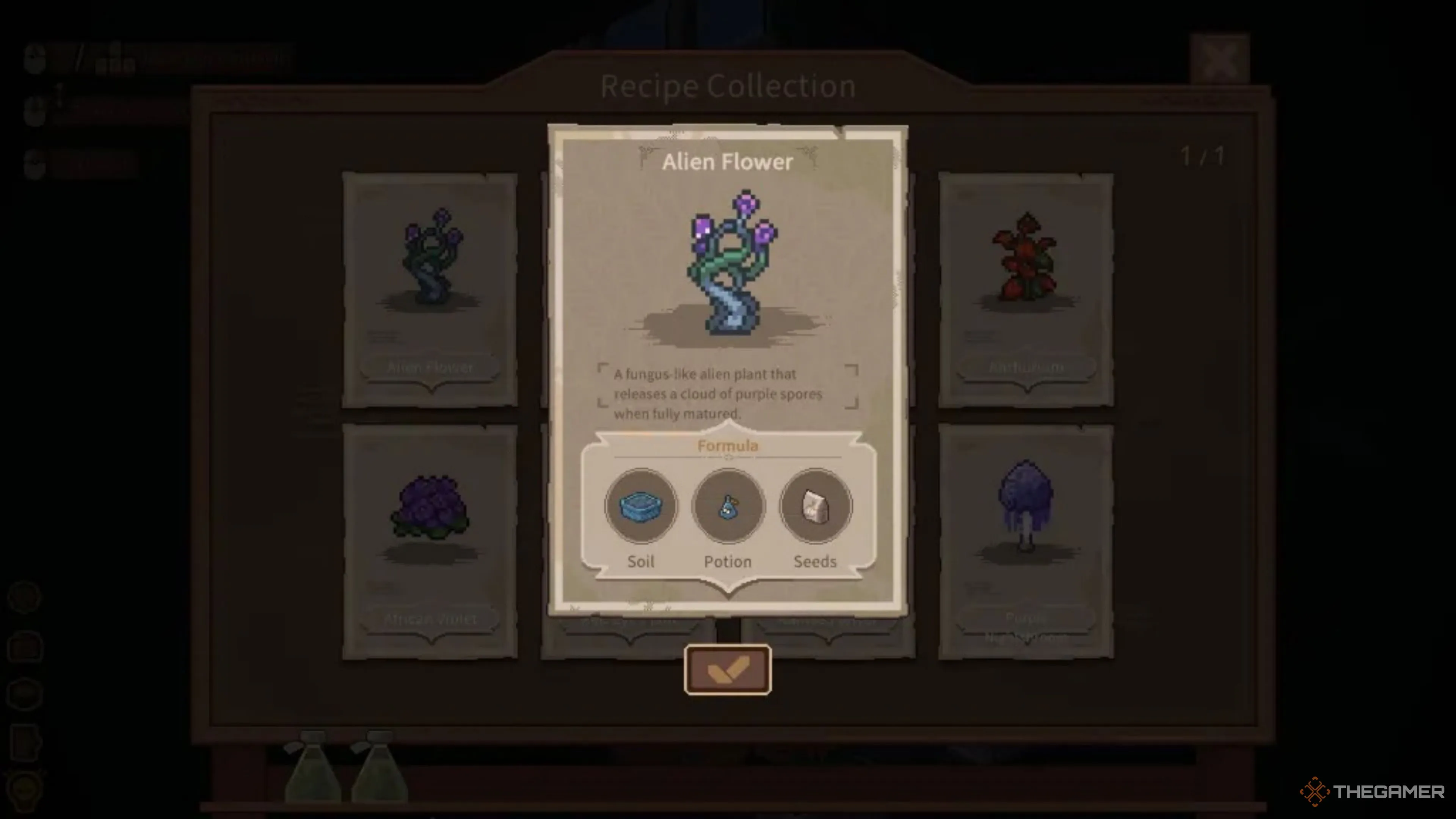 - Если получилось не то растение или вы ошиблись с ингредиентом, воспользуйтесь лопатой, чтобы удалить его и начать заново.
