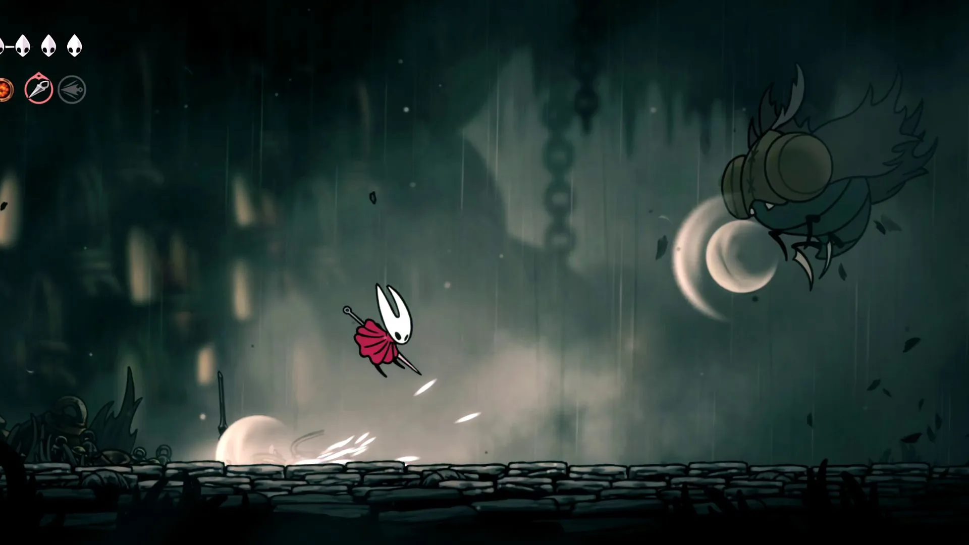 - Хотя вы можете использовать Связывание и лечиться, когда Мурвинг оглушён, поскольку Хорнет может применять Связывание в воздухе, лучшая возможность для лечения — во время прыжка над атакой «Низкий рывок».