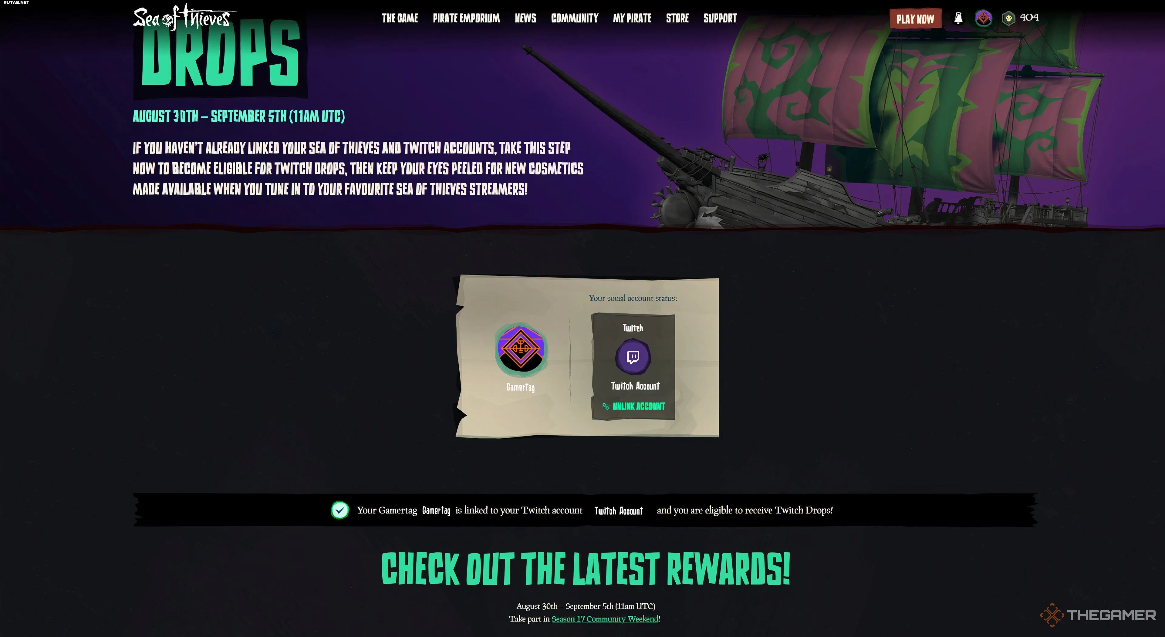 На этой же странице, после входа с учётными данными Sea of Thieves, вы можете привязать свой игровой тег к аккаунту Twitch, который будете использовать для просмотра трансляций. Без привязанного аккаунта вы не получите внутриигровые предметы, даже если будете смотреть стримы.