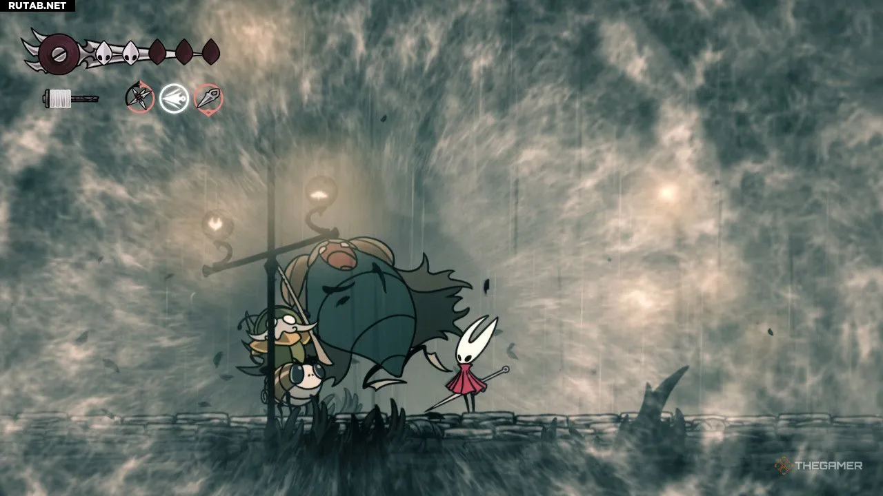 К счастью, вам не придётся сражаться с Мурвингом в одиночку. В дождливых просторах Греймура герой ждёт призыва Хорнет. Если вы найдёте его, этот рыцарь и его верный скакун придут на помощь в битве и покончат с угрозой, охраняющей медные ворота.
