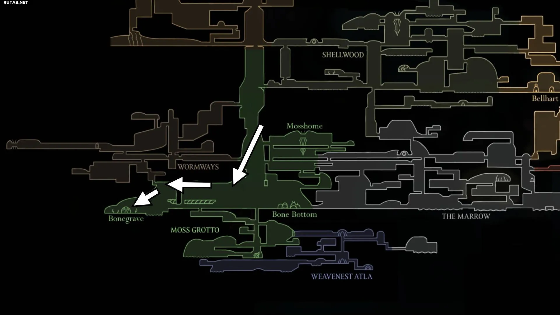 Используйте умение «Цепкий захват» для доступа к северному входу в Червоточины. | Изображение: MapGenie/Team Cherry