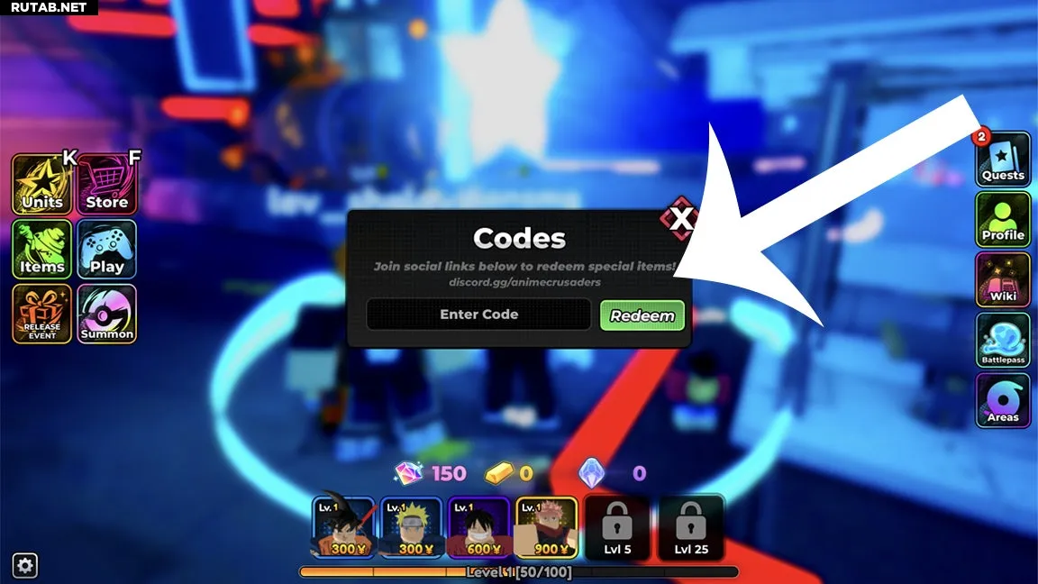 Как активировать коды в Anime Crusaders