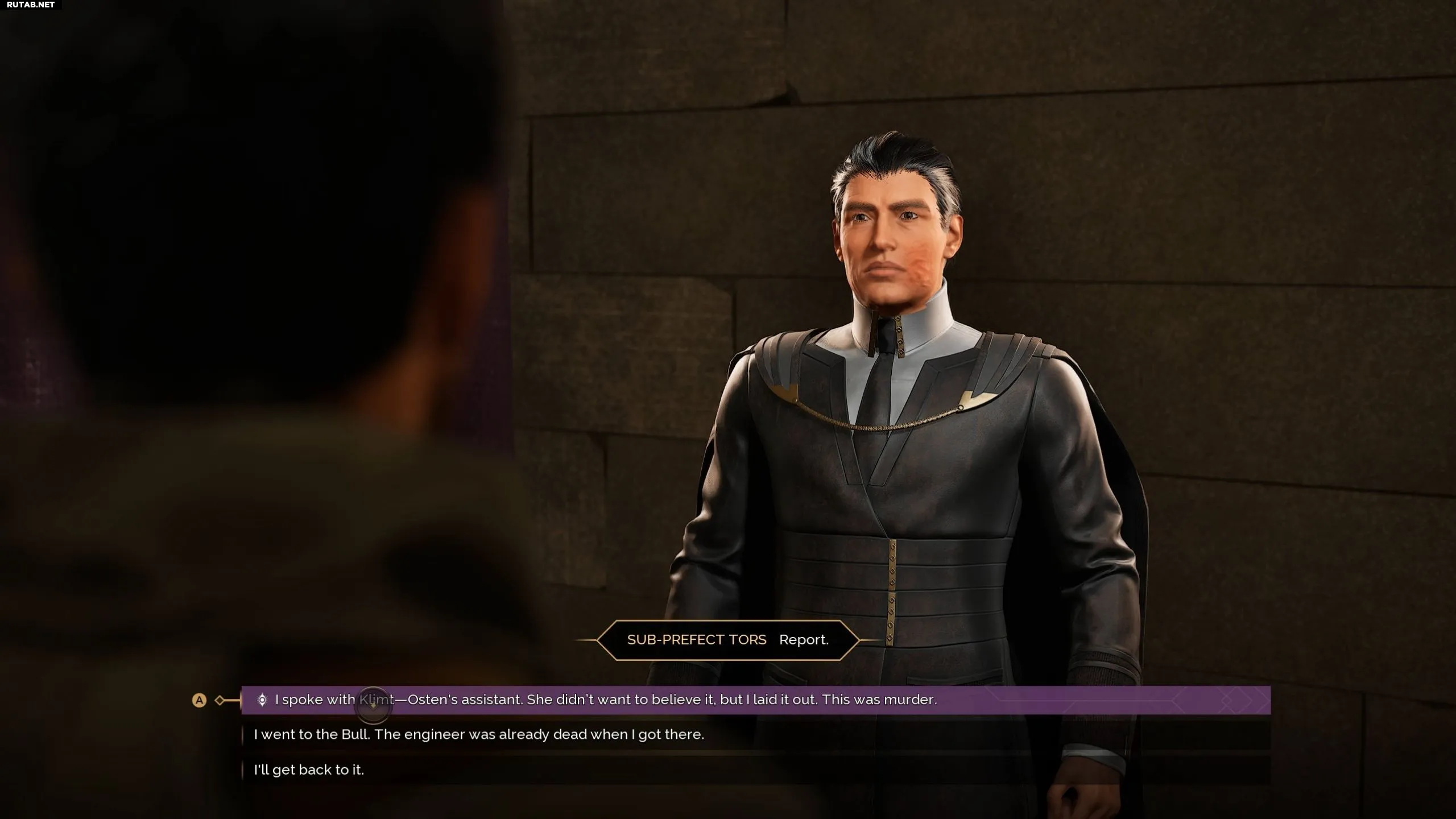 Это запустит квест «Процесс-Вербаль», требующий от игроков отправиться в Арракин и поговорить с главным следователем, суб-префектором Торсом. Согласившись помочь следователю, вы получите задание найти Остена Лейта в верхней части бара «Солузанский бык».
