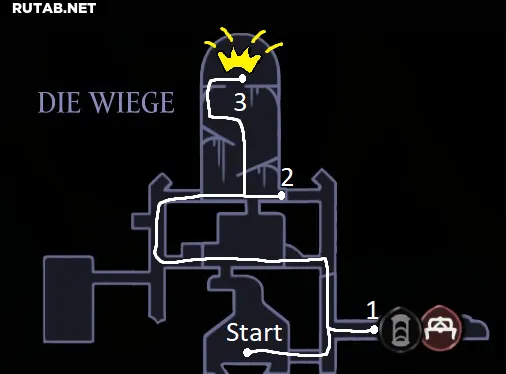 В разделе «Колыбель» гайда указано: «Откройте короткий путь» — это и есть пропуск Терминуса. Конкретно: после скамейки у Терминуса двигайся вправо, используй Коготь для зацепа за платформы, затем Парение для преодоления большого разрыва. Это позволяет избежать длинного обходного пути через нижние области.
