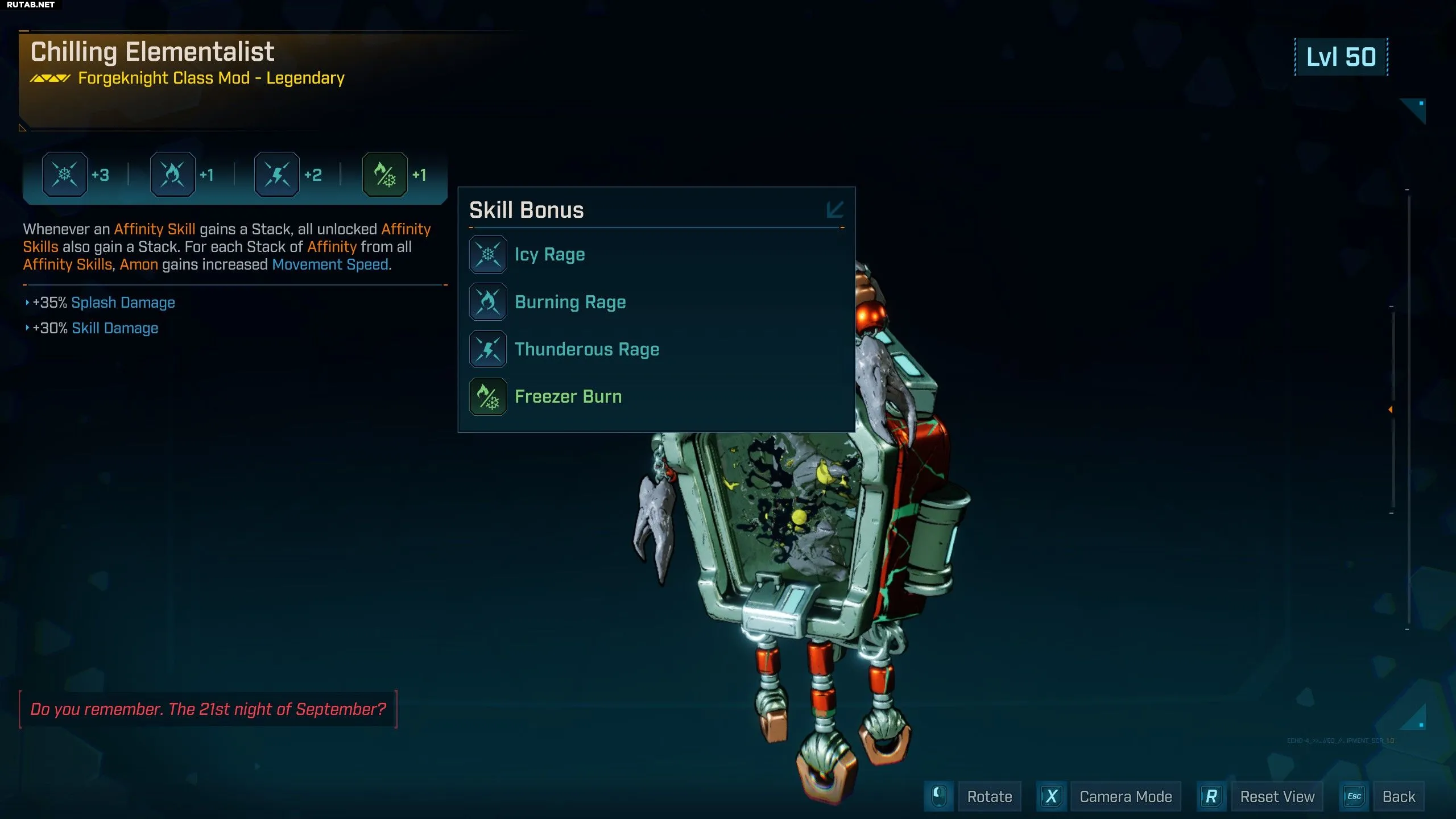 Icy Rage | Навык убийства. Убийство врага крио-уроном из оружия или эффектов статуса даёт стак крио-сродства, увеличивающий урон от оружия. | 5/5 | Убийства крио-уроном дают до +50% к урону от оружия. |