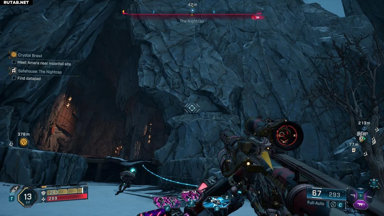 - Расположение: Убежище находится у вершины горы, которую Рипперы превратили в базу. Уровень врагов здесь — 15 и выше (на нормальной сложности). Можно попытаться прорваться к планшету данных и терминалу управления.