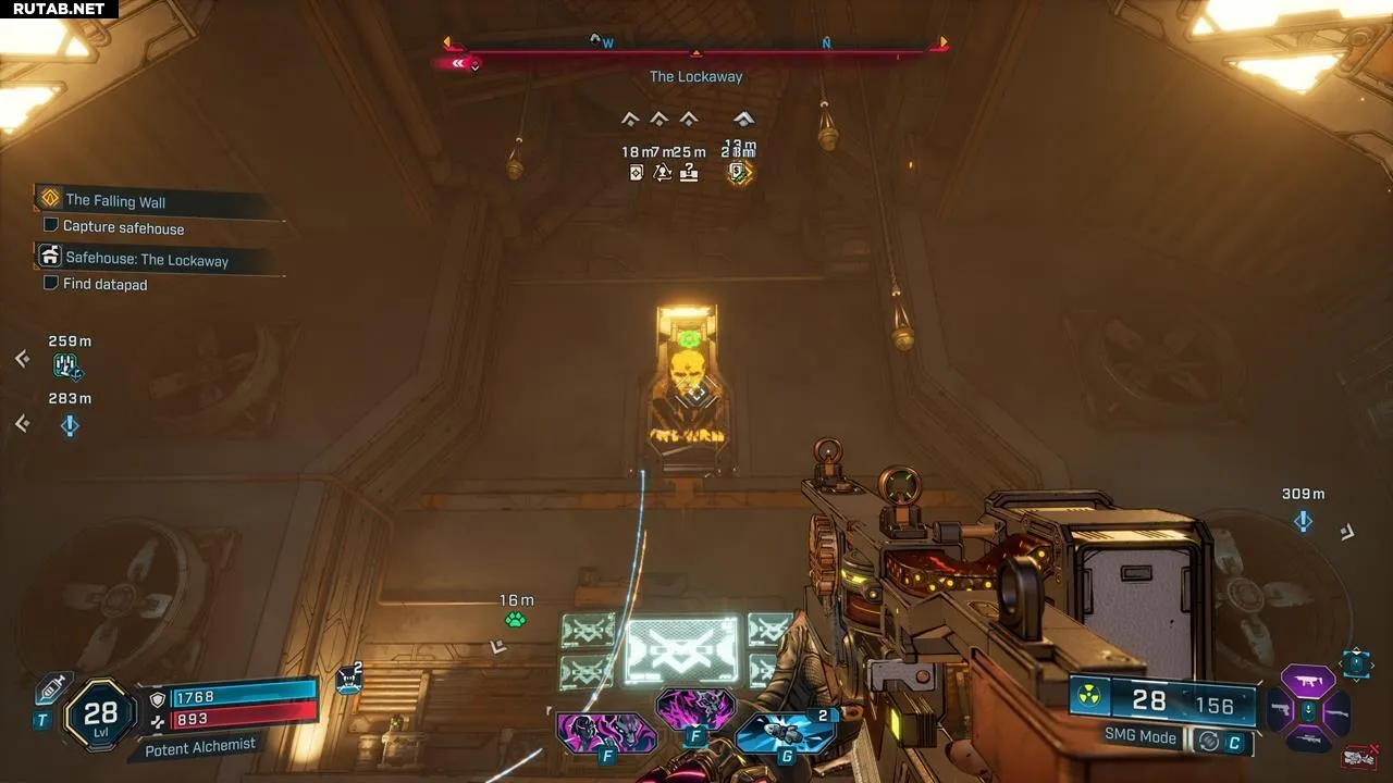 - Расположение: Это убежище невозможно пропустить, так как оно автоматически открывается после выполнения начальных заданий Клептрапа. Также учтите, что здесь появляются ваши альтернативные персонажи при активации режима «Охотник за Святилищем» — они 30-го уровня, но без снаряжения и с картой.