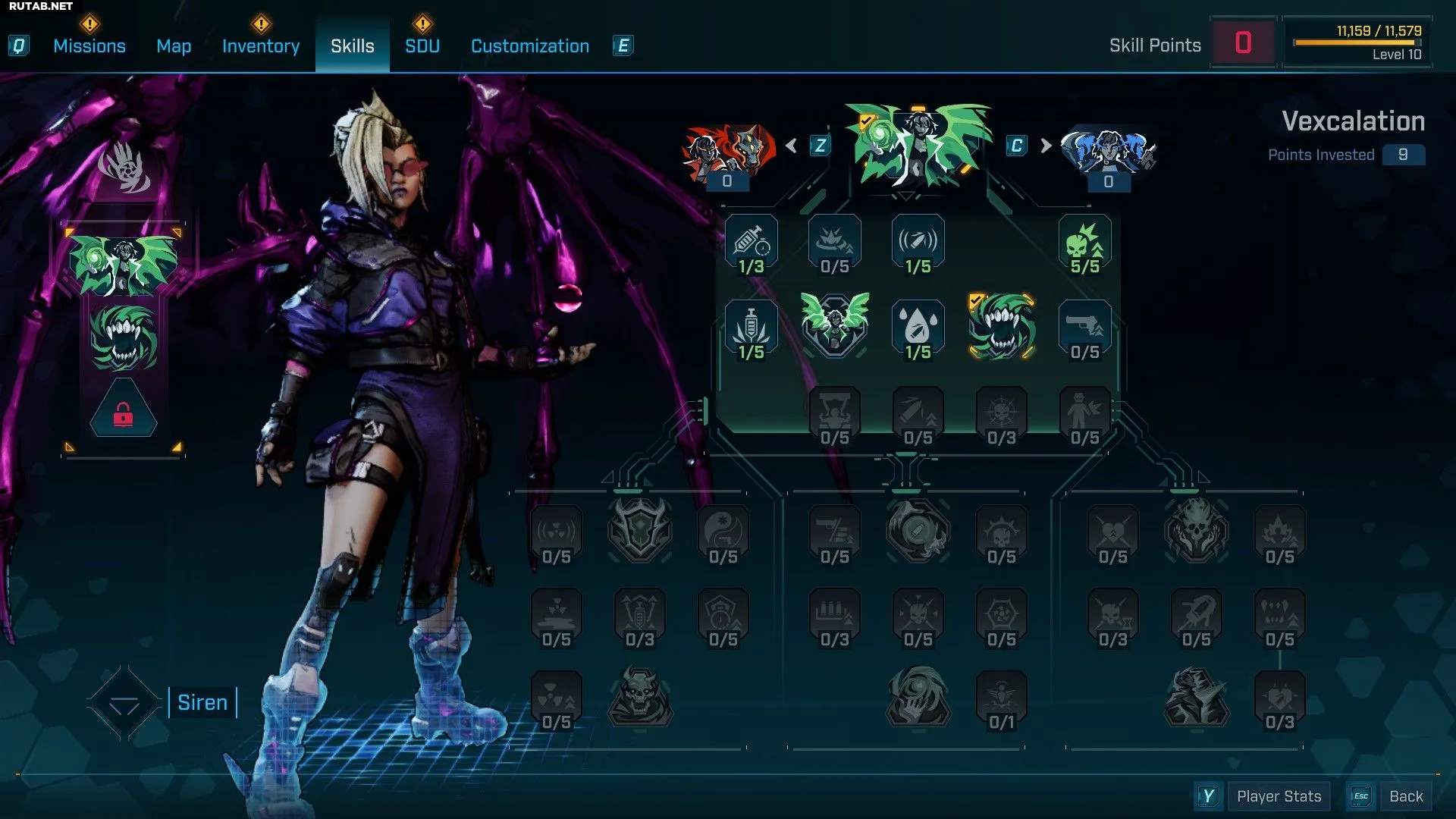 С возможностью переключаться между тремя активными способностями Векс усиливается своими сиренскими силами и настраивается на стихии в зависимости от экипированного оружия. Кинетическое оружие даёт вампиризм, превращая её в настоящую вампиршу, а элементальное оружие усиливает её способности мощными эффектами, которые жгут плоть, уничтожают щиты, замораживают врагов или плавят самую крепкую броню.