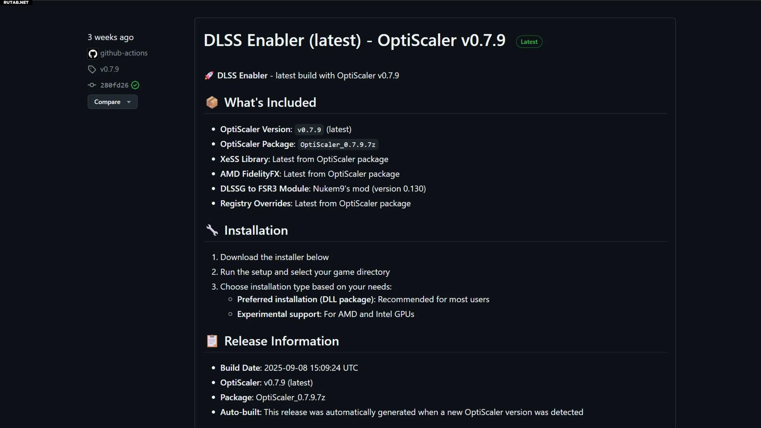 - Посетите официальный репозиторий DLSS Enabler на GitHub и скачайте .exe файл из последнего релиза