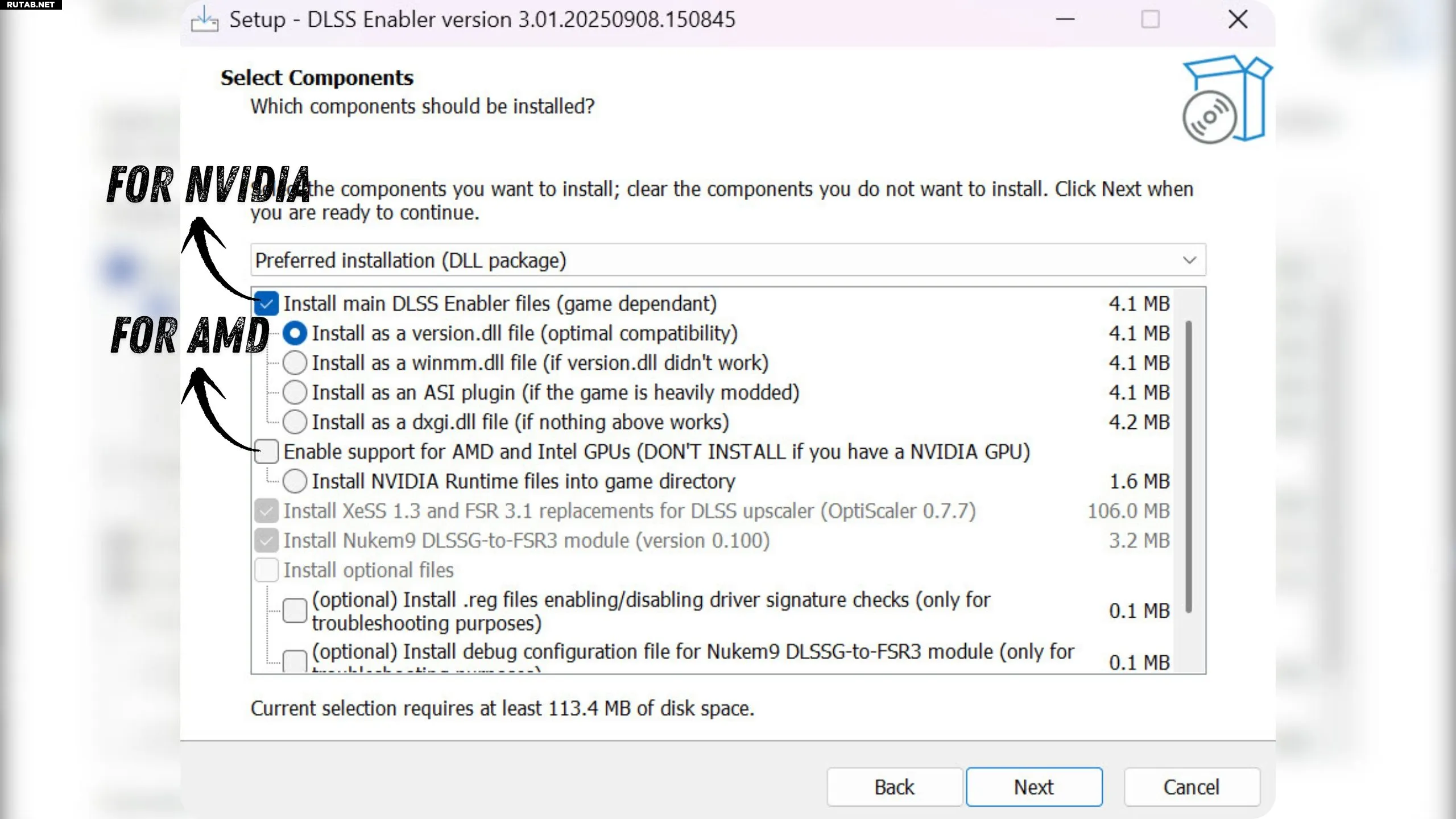 - В разделе Components выберите опции в соответствии с вашей видеокартой