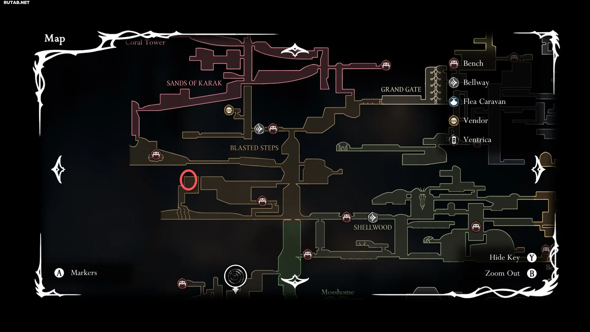 Вспомните, как вы получили карту Шепчущих катакомб в Silksong, так как этот Обломок маски скрыт аналогичным образом: Хорнет должна ударить по потолку, чтобы открыть секретный проход наверх.