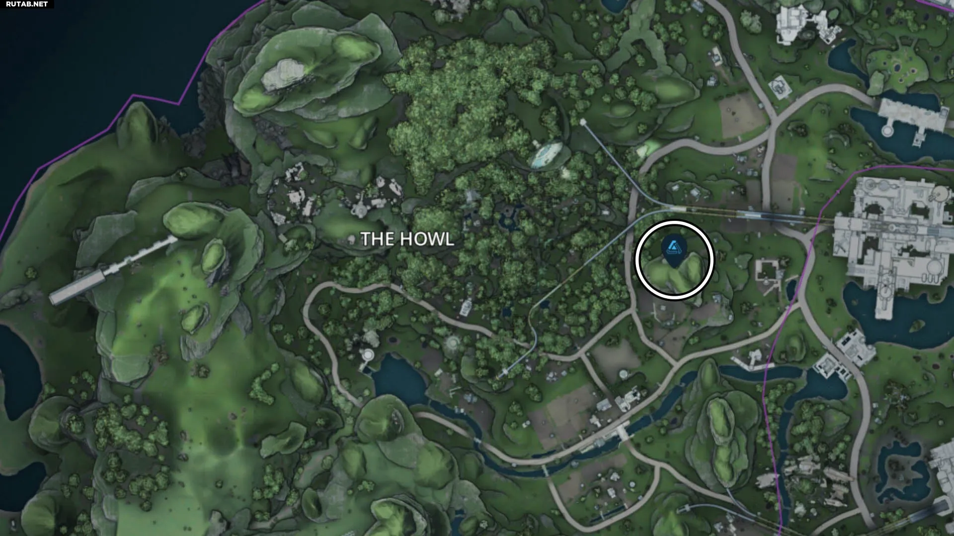 Фрагмент находится на уступе над дорогой — ищите желтые камни и мертвое дерево.