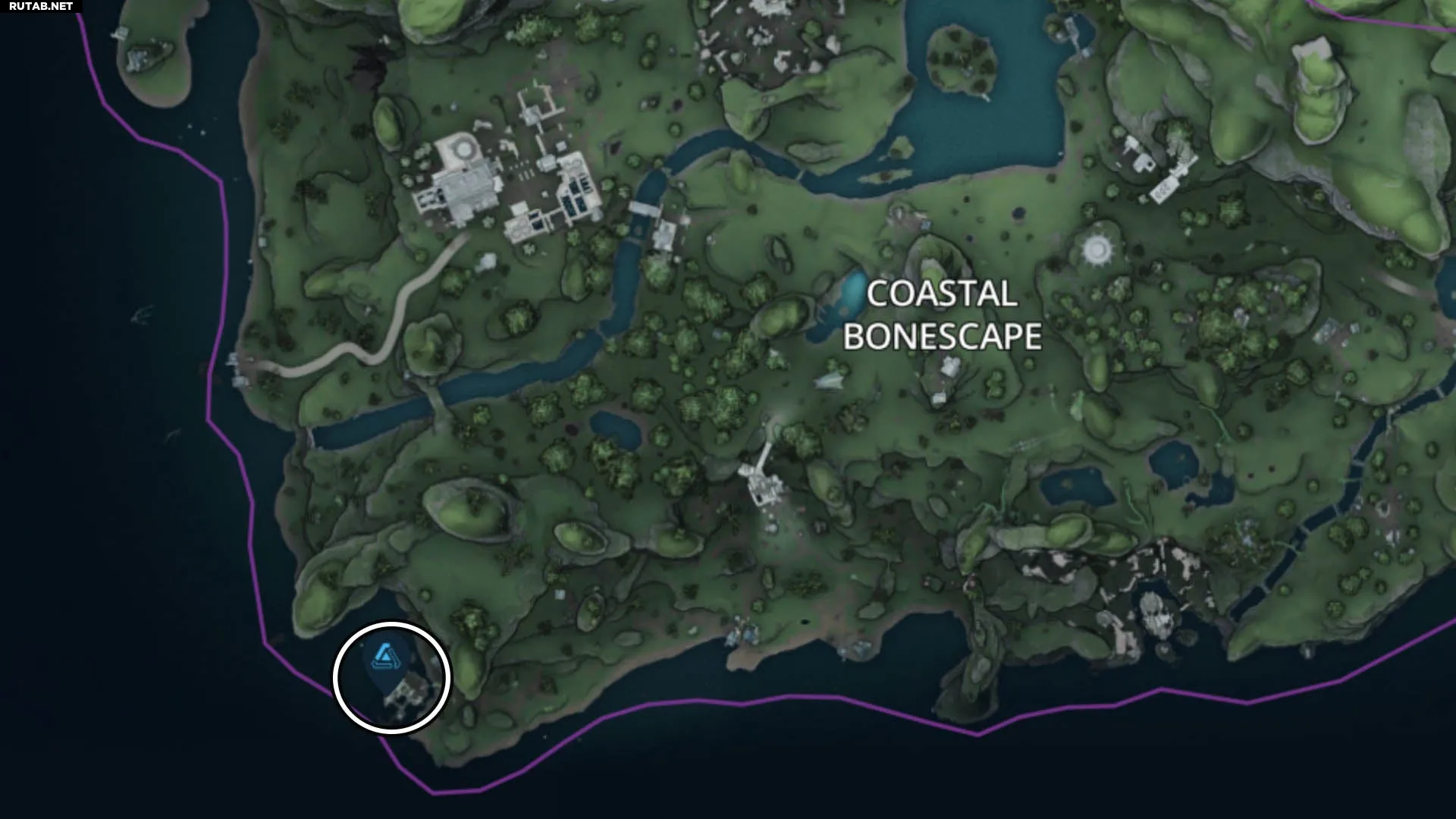 Фрагмент находится в пещере высоко на скале. Сам фрагмент расположен в глубине пещеры между двумя телами.