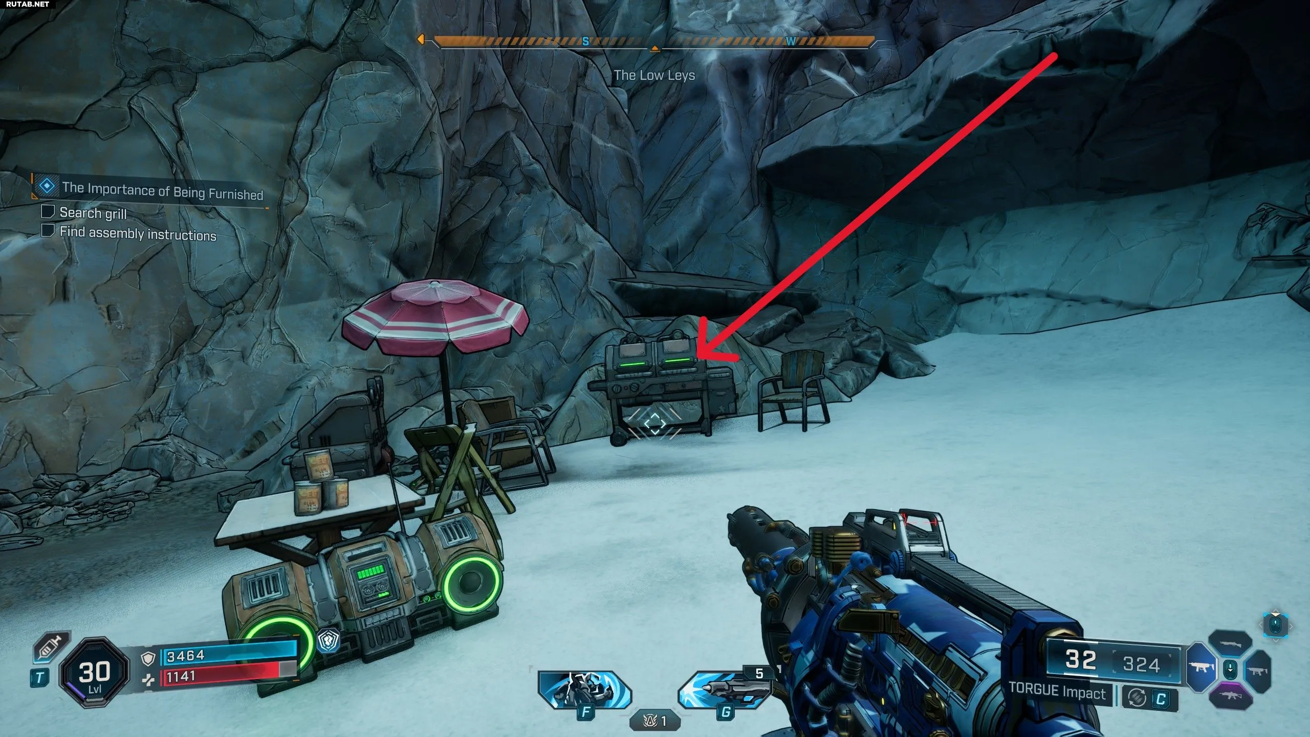 - «Поискать в гриле» — выйти из Белтонской Норы и открыть гриль слева, ближайший к скальной стене.
