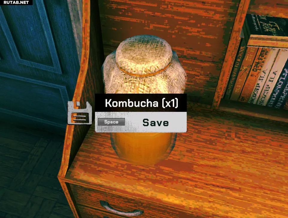 Слева вы увидите большой стакан с комбучей. При ближайшем рассмотрении вы получите возможность сохранить игру.