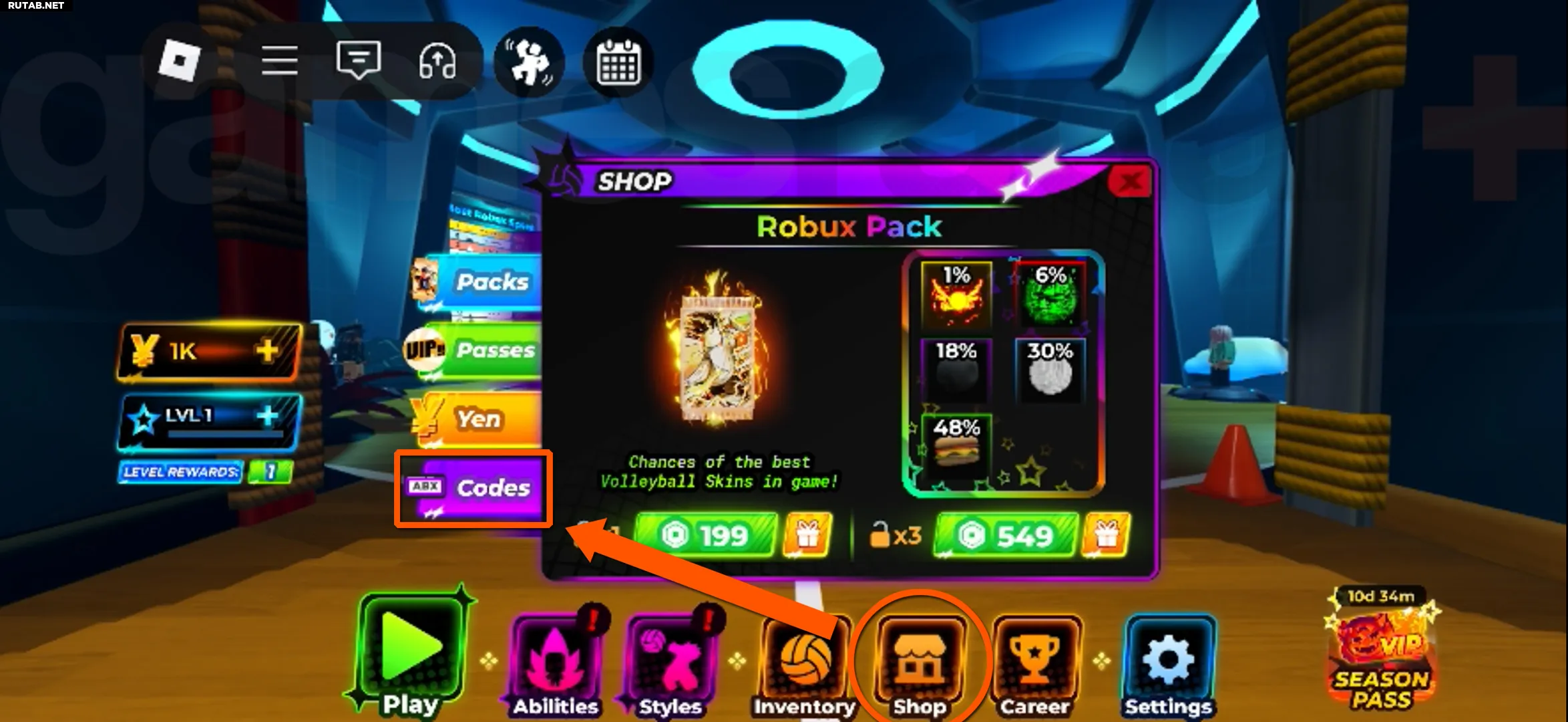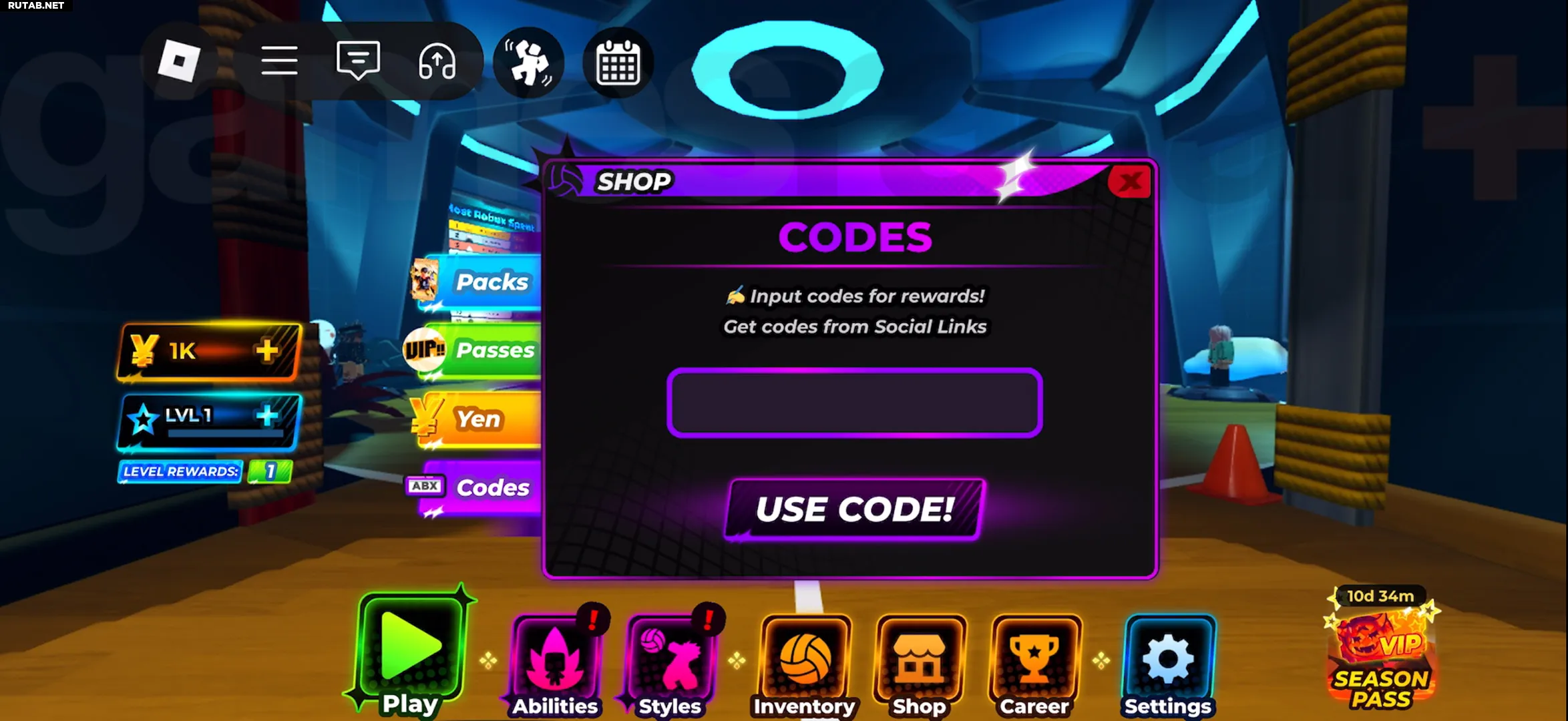Чтобы активировать коды в Volleyball Legends, запустите игру через Roblox и нажмите на оранжевую иконку Магазин в нижней части экрана. Откроется меню магазина, где нужно выбрать фиолетовую вкладку Коды в левой части всплывающего окна. Введите промокод в соответствующее поле и нажмите кнопку Использовать код! для активации. Учтите, что для использования кодов необходимо достичь как минимум 15-го уровня — если условие не выполнено, на экране появится соответствующее предупреждение.