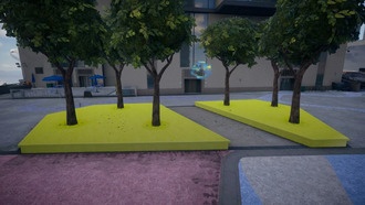 Нужно выполнить восемь грйндов. Края тех же жёлтых площадок отлично подходят: разгонитесь, сделайте олли так, чтобы доска приземлилась на грань, и удерживайте позицию. Чтобы сойти — снова подпрыгните.