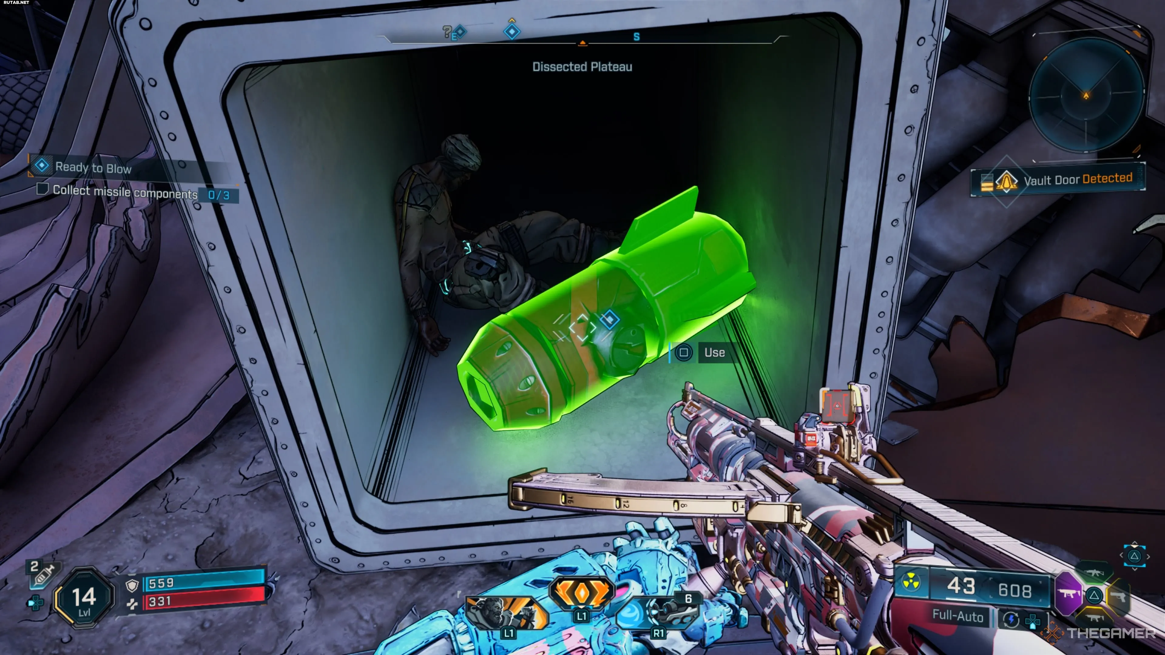 Третий компонент всё ещё находится в этой зоне обломков, но нужно подняться на nearby уступ и за угол. При приближении к остаткам обломков появятся несколько Манглеров, включая одного особого Badass Манглера, которого нужно убить, чтобы он выбросил последний компонент ракеты.