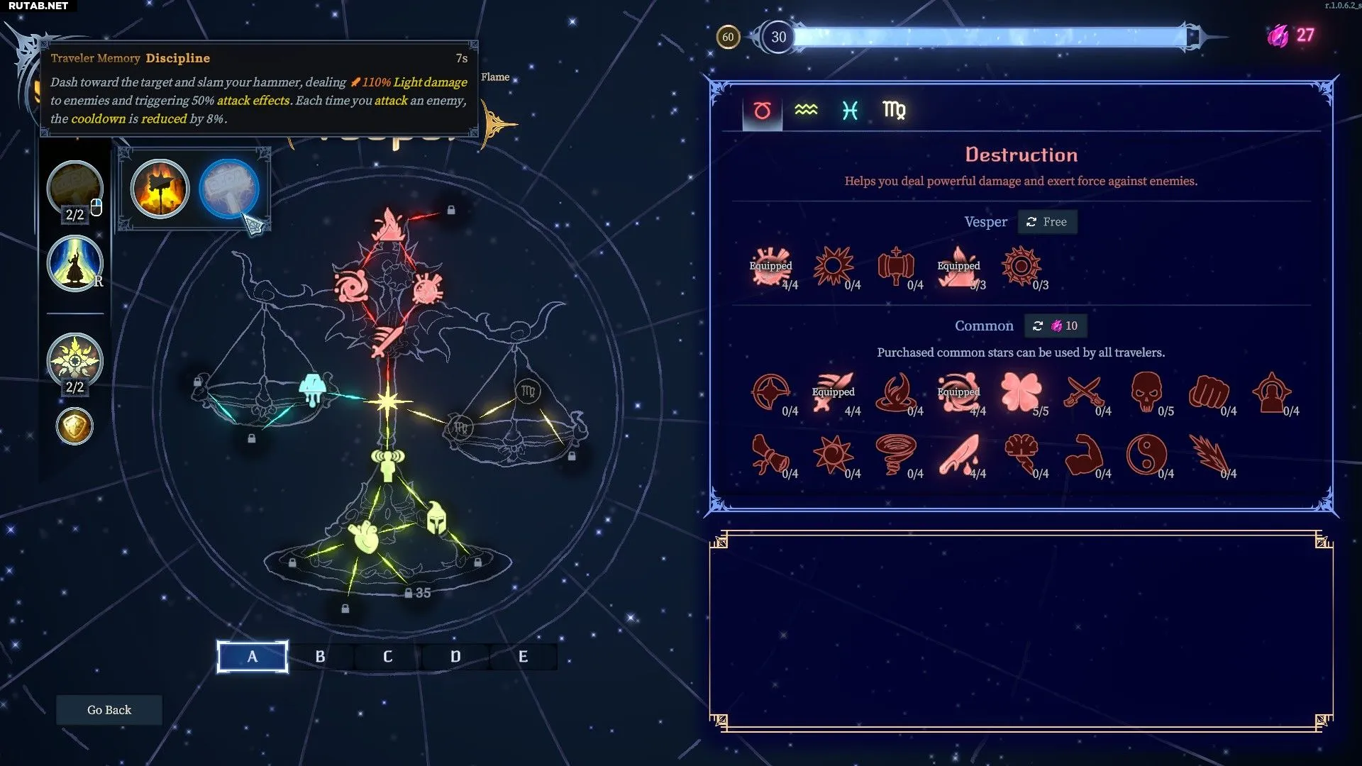 Мы настроим древо созвездий с учётом упомянутых выше характеристик. Новичкам потребуется сначала прокачать Веспера, чтобы открыть некоторые из перечисленных ниже пассивных умений: