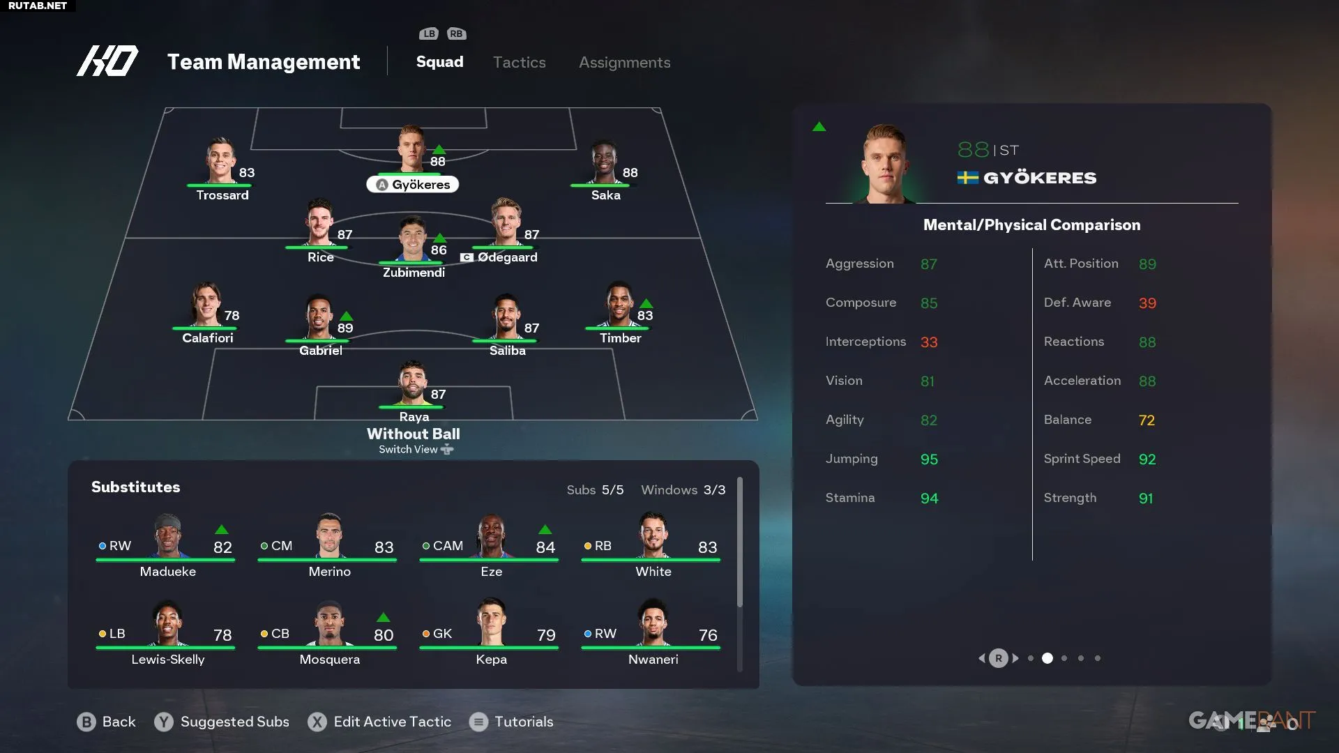 Виктор Гёкереш | Арсенал | НАП | 27 | 188 см | 87 | 91 | 91 |