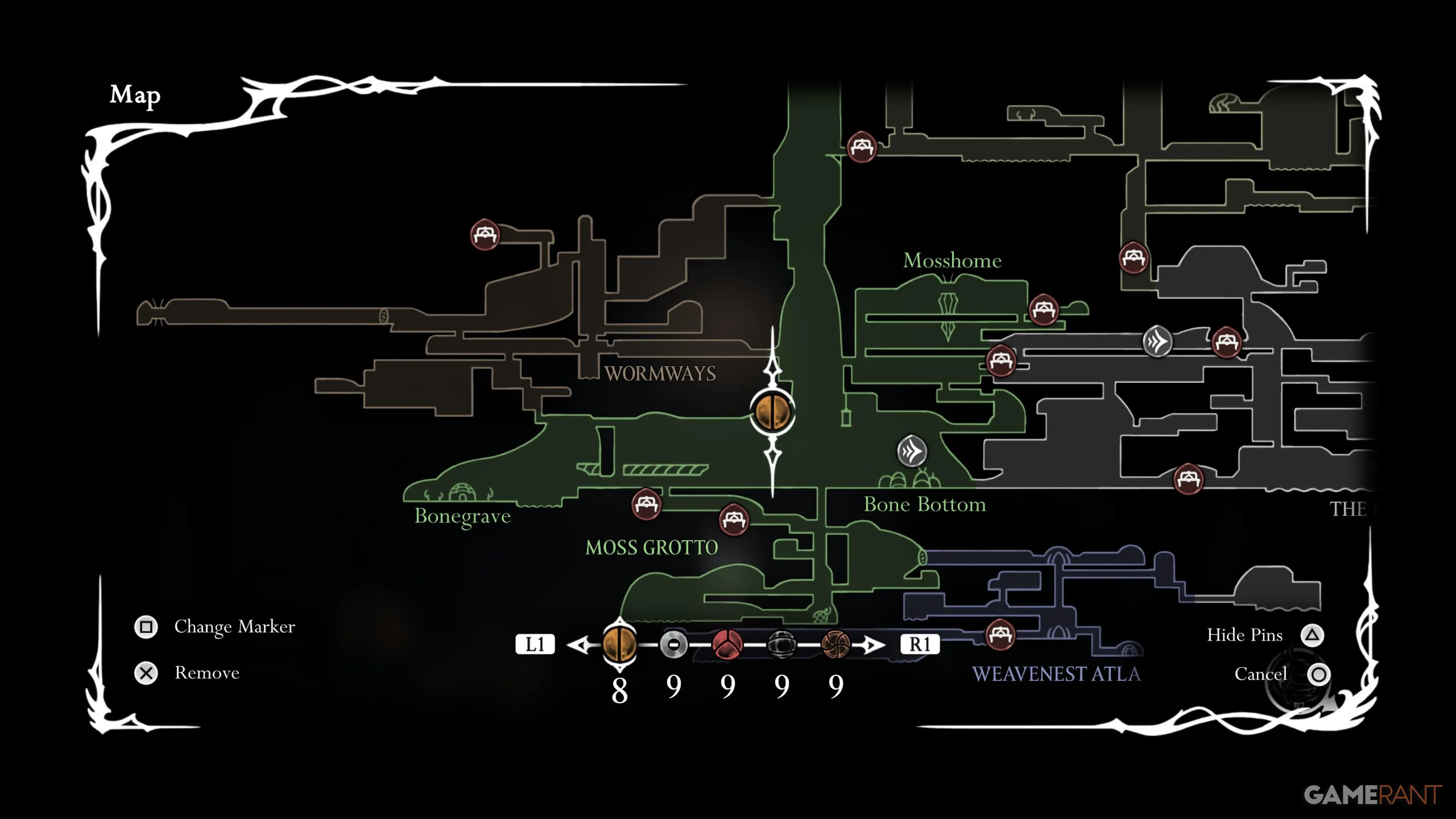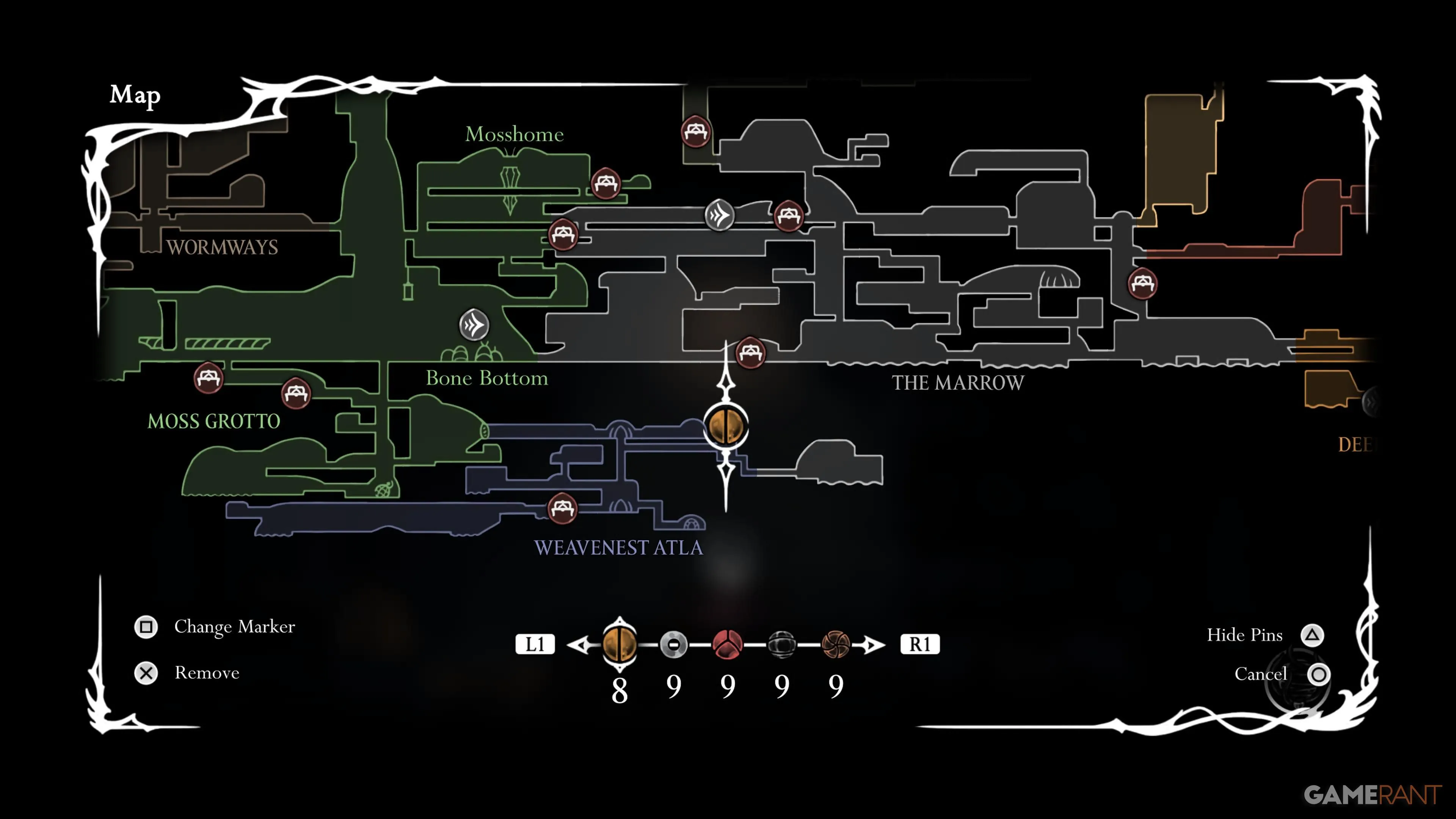 Пройдите через верхний левый проход внутри Мохоума и спрыгните или спланируйте вниз. Держитесь левой стены, и вскоре вы попадёте в комнату, до которой едва можно добраться и забраться. Здесь вы найдёте первую Фигурку Ткача. Это тот же путь, что ведёт к Знаку Странницы.