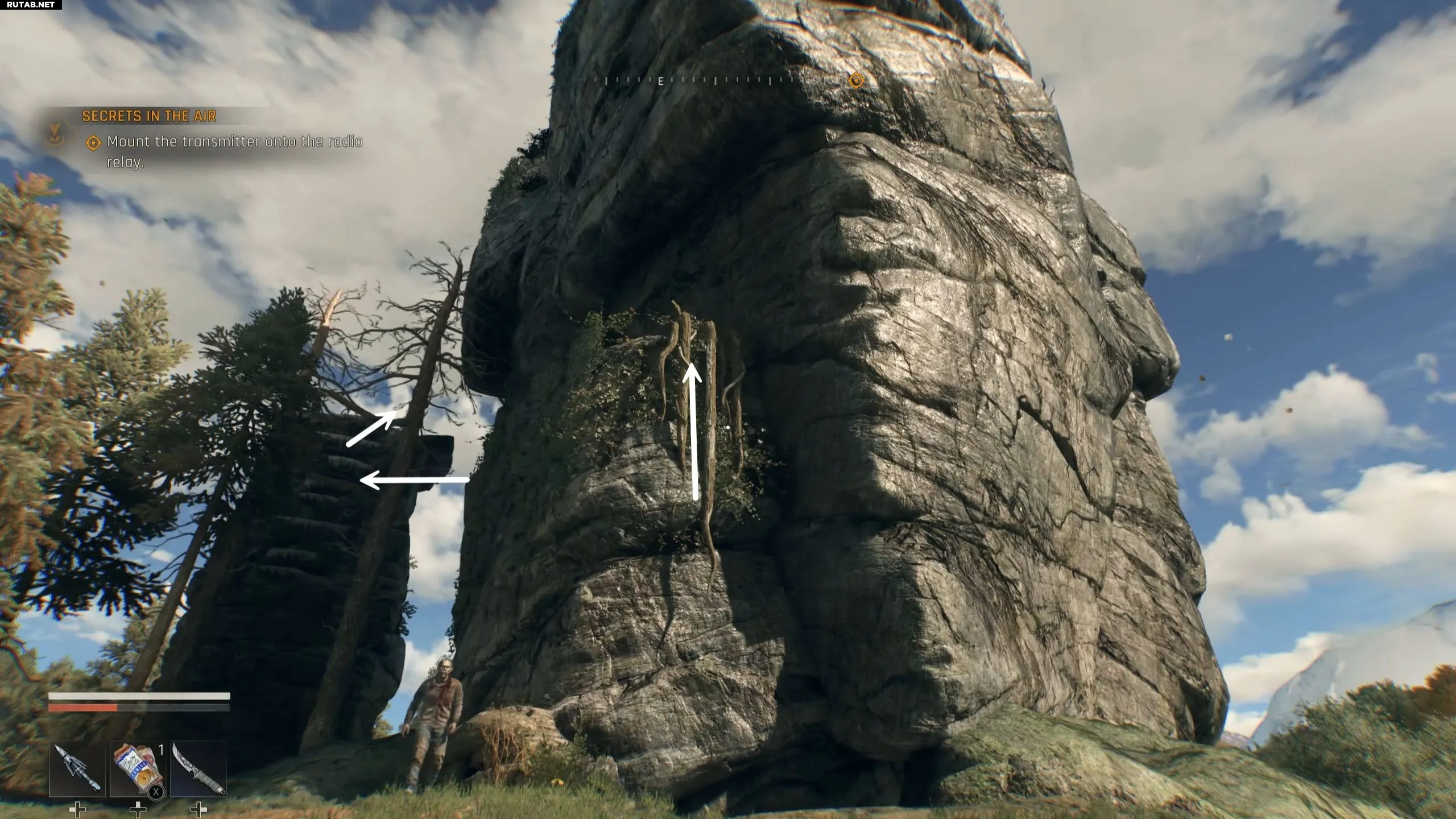 Обойдите гору, чтобы найти проходимый путь сбоку. Следуйте по маркерам на изображении выше, чтобы добраться до вершины скального выступа.
