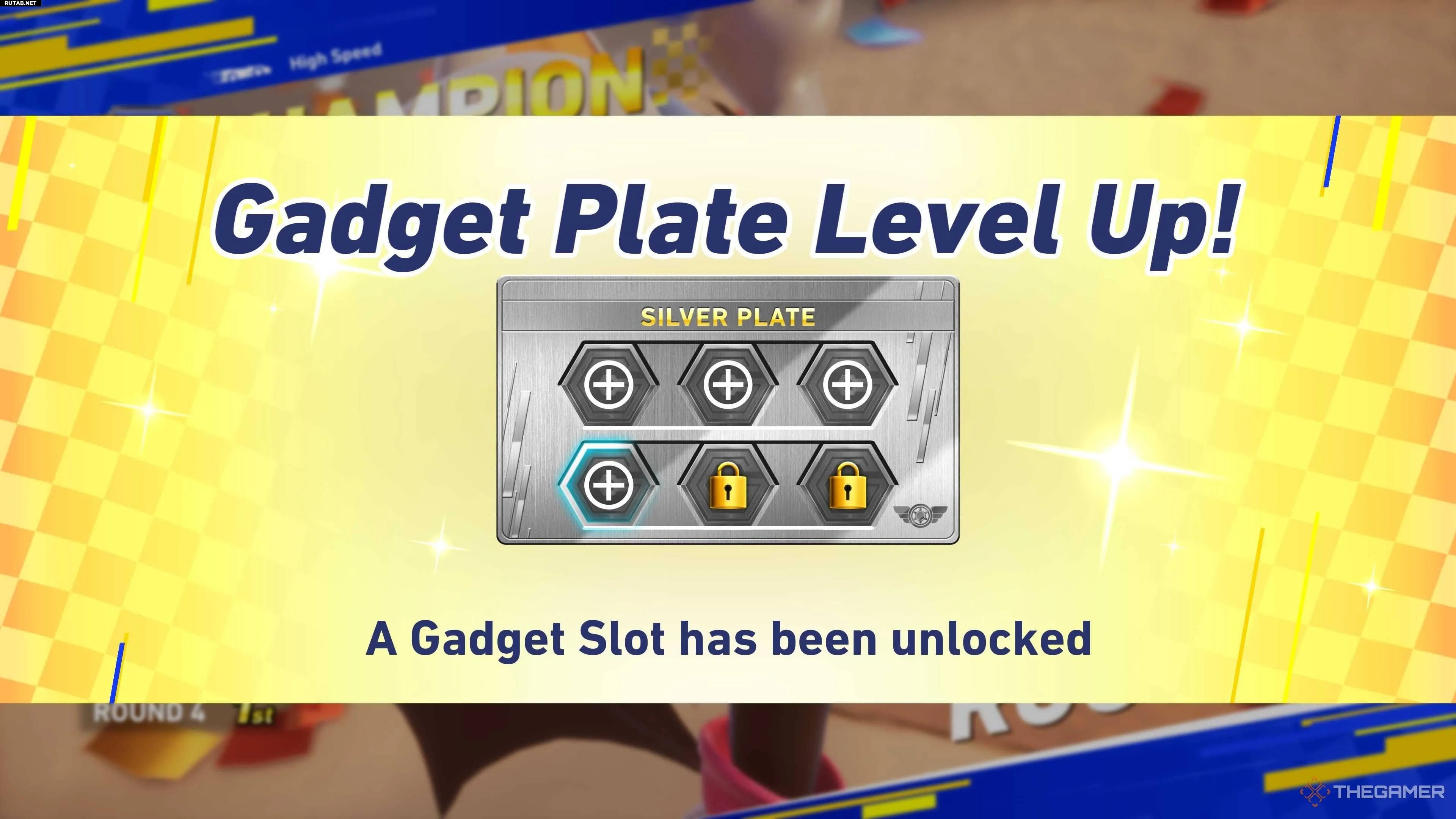 Первоначально количество слотов ограничено, но оно увеличивается с повышением уровня пластины. Уровень растёт просто от участия в гонках — прогресс начисляется после каждого Гран-при. Максимальный уровень — Мастер-пластина, открывающая все шесть слотов для гаджетов.