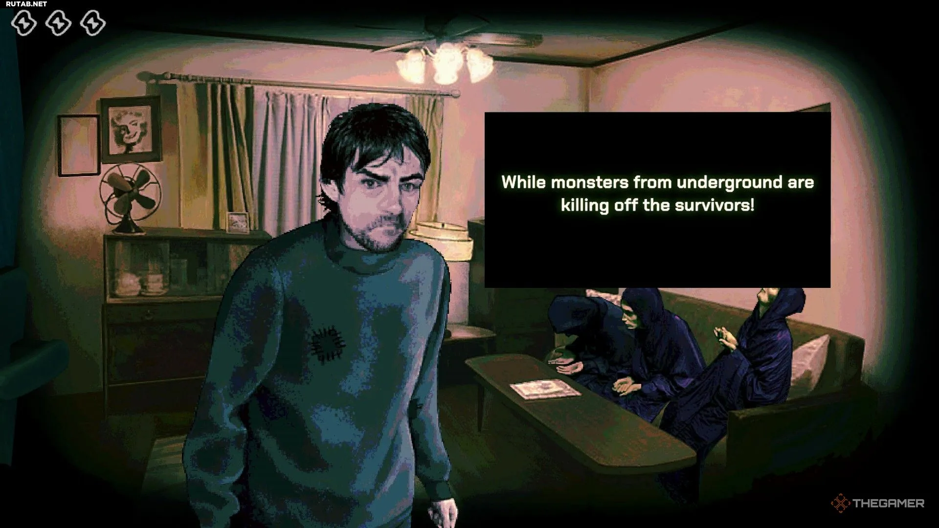 В игре No, I'm not a Human главная задача — выжить, а для этого нужно научиться отличать настоящих людей от опасных Посетителей, которые стучатся в дверь и могут убить других гостей ночью.