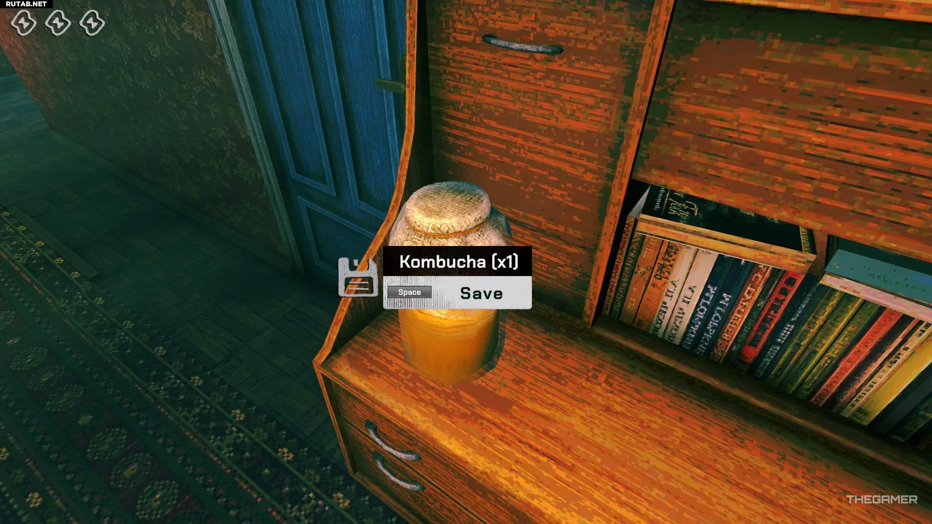 В коридоре находится банка комбучи, которую можно использовать для сохранения. После её использования вам придётся заказывать новую через ForRest, прежде чем вы сможете сохраниться снова. Это может быть неудобно, так как заказы ограничены по частоте, и за раз можно заказать только один тип товара.