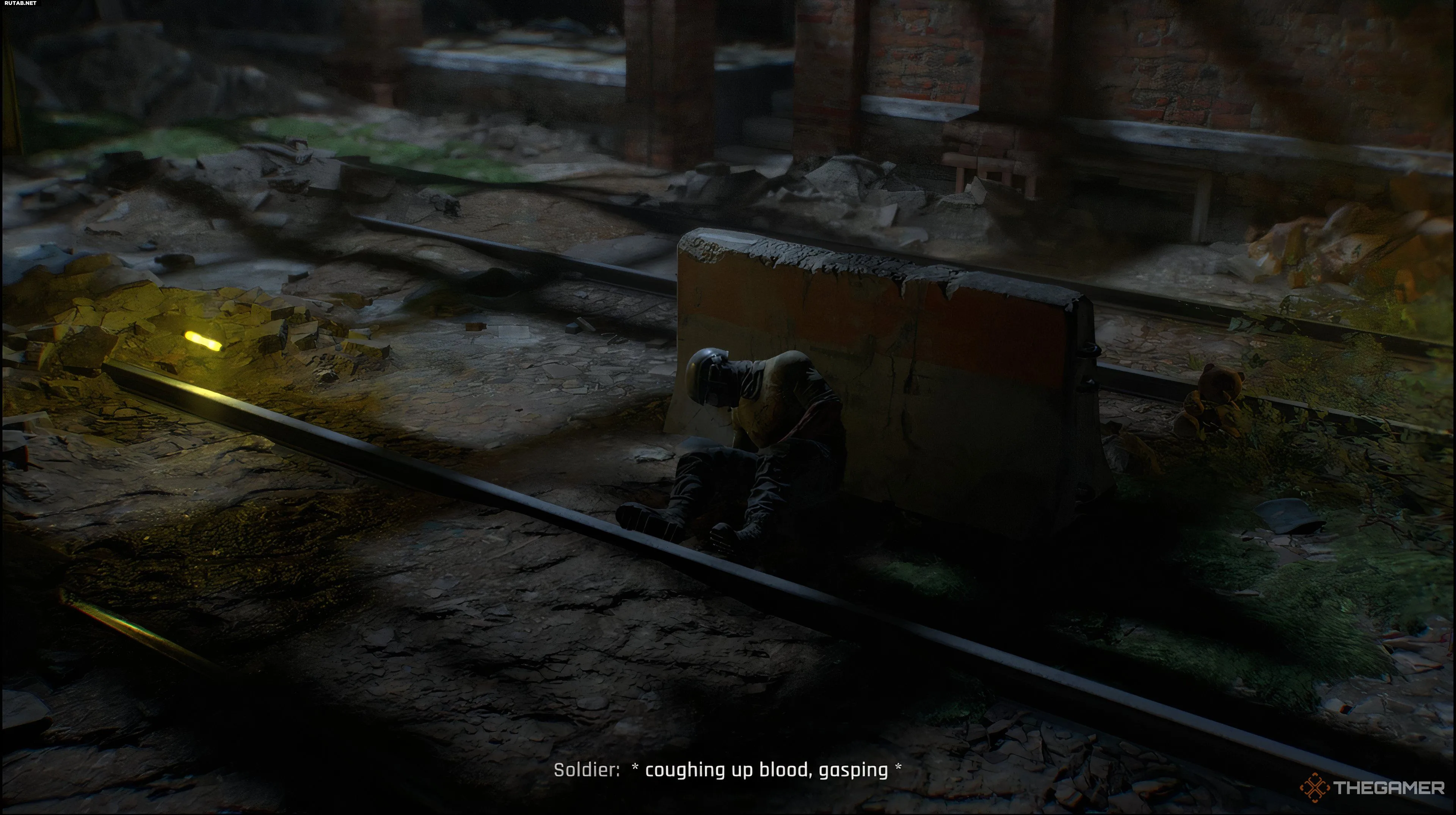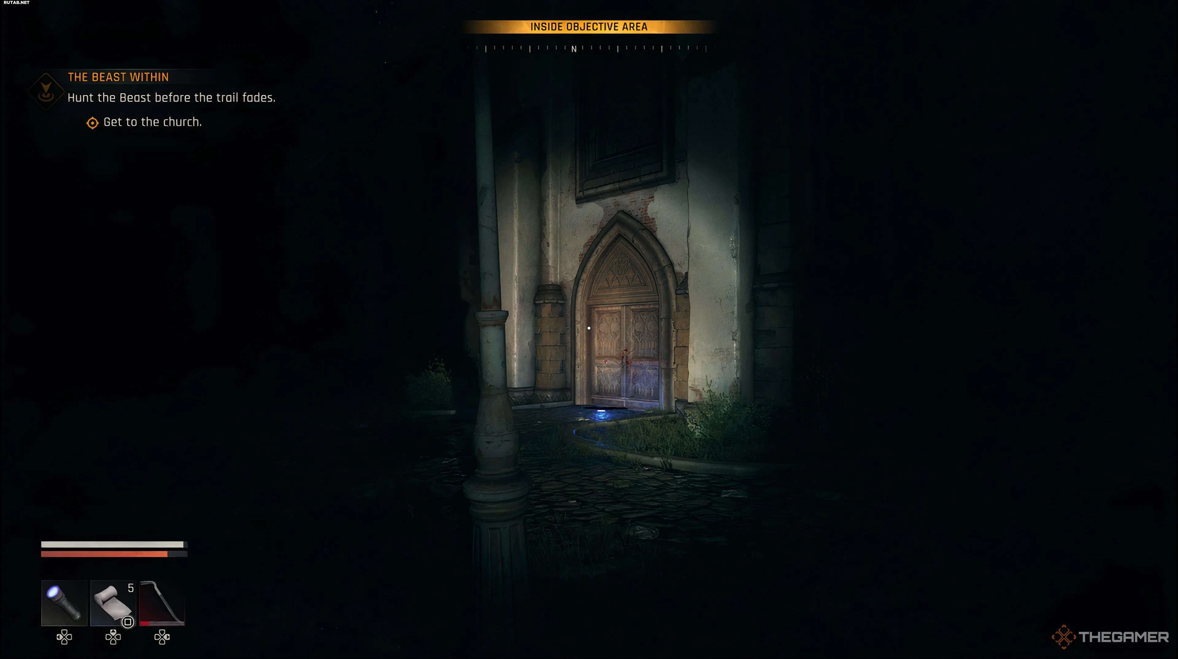 С активным Чувством выжившего пройдите по линейному маршруту к двери, окруженной кровью. При ее открытии запустится кат-сцена: вы взаимодействуете с павшим солдатом, а затем кратко встречаетесь с искомым Зверем.