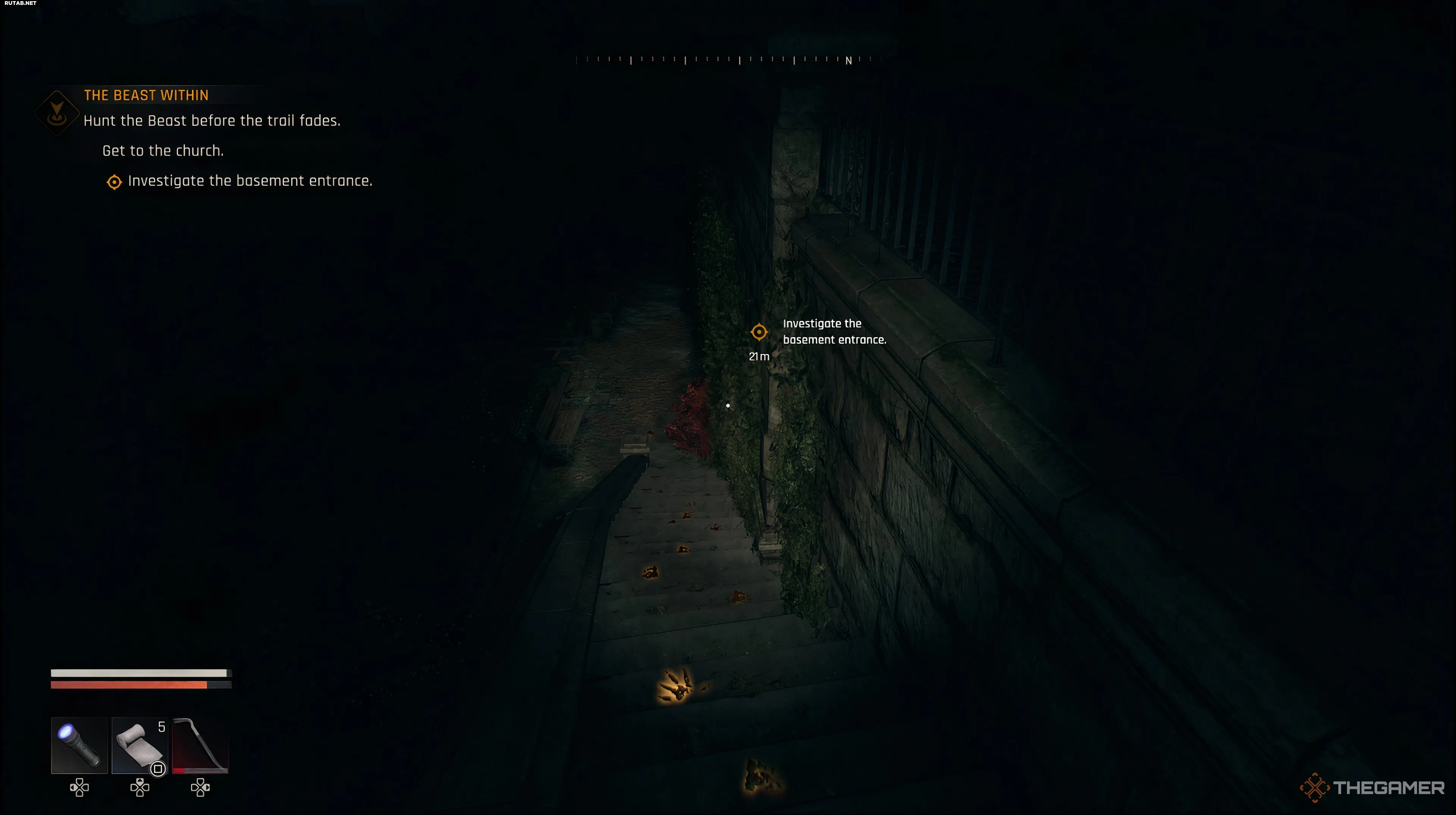 Далее направляйтесь в южный угол Ратуши, чтобы воспользоваться лестницей и выйти наружу. Оказавшись снаружи здания, вы обнаружите, что наступила ночь — включите фонарик для лучшей ориентации.