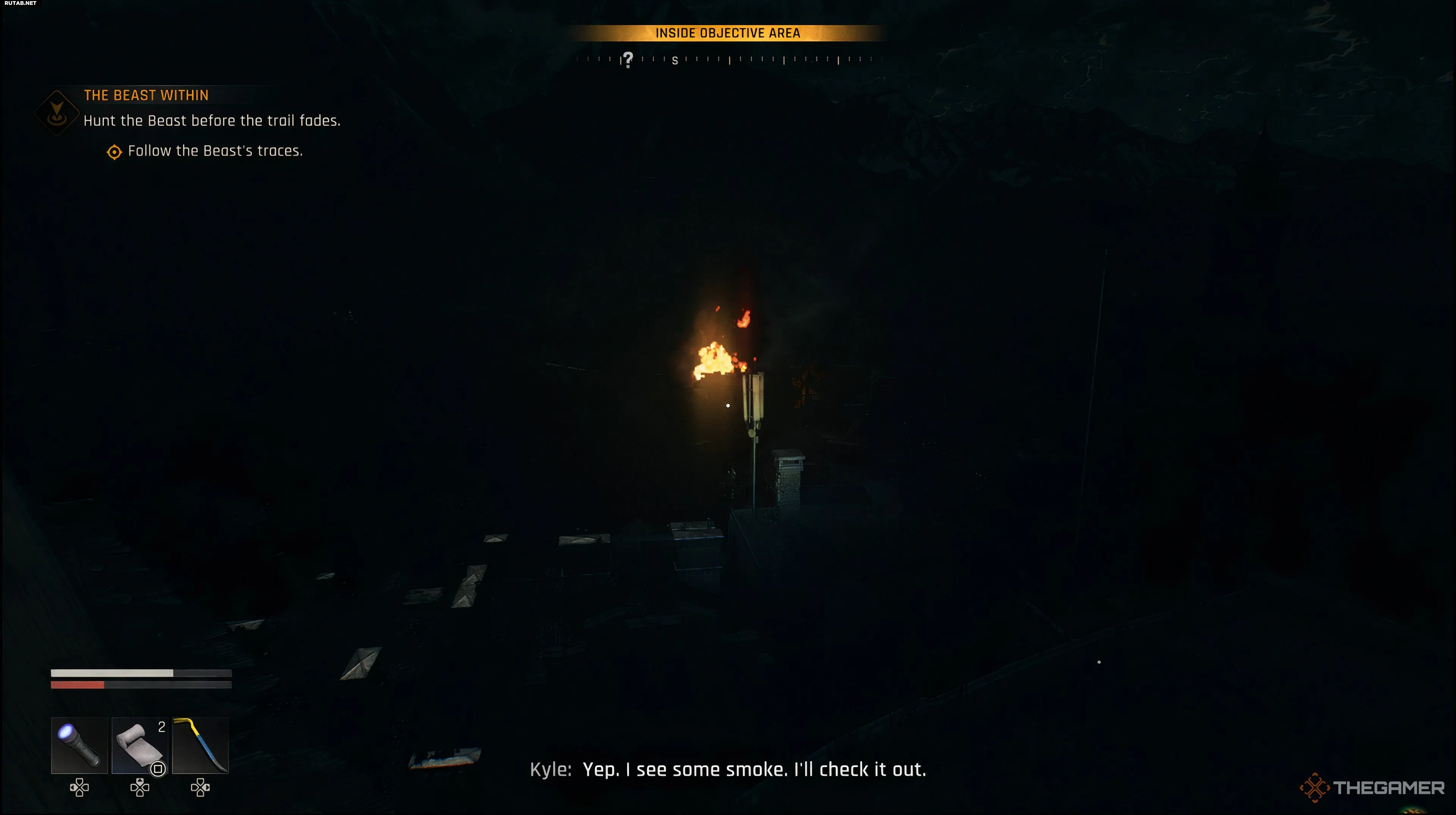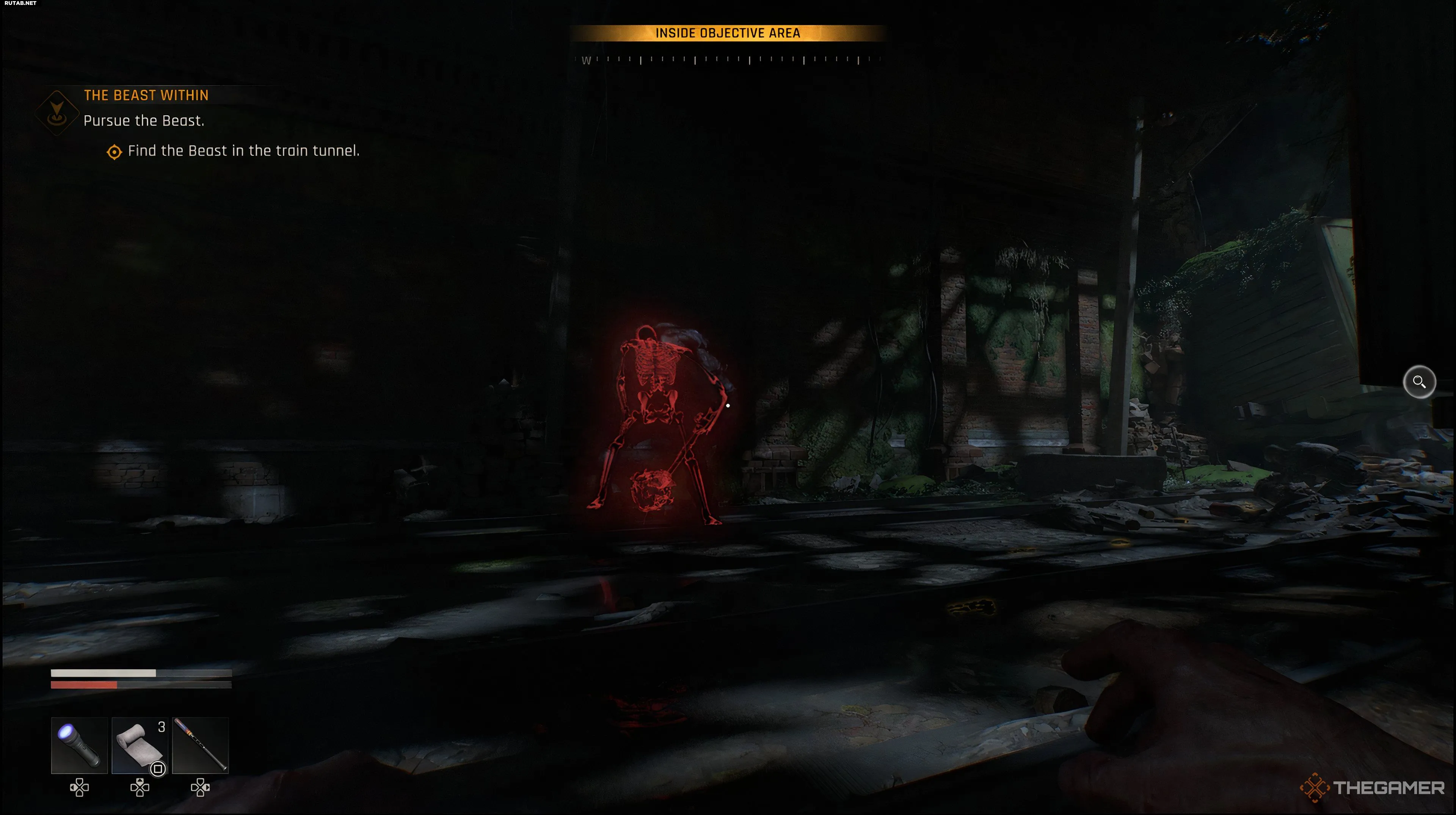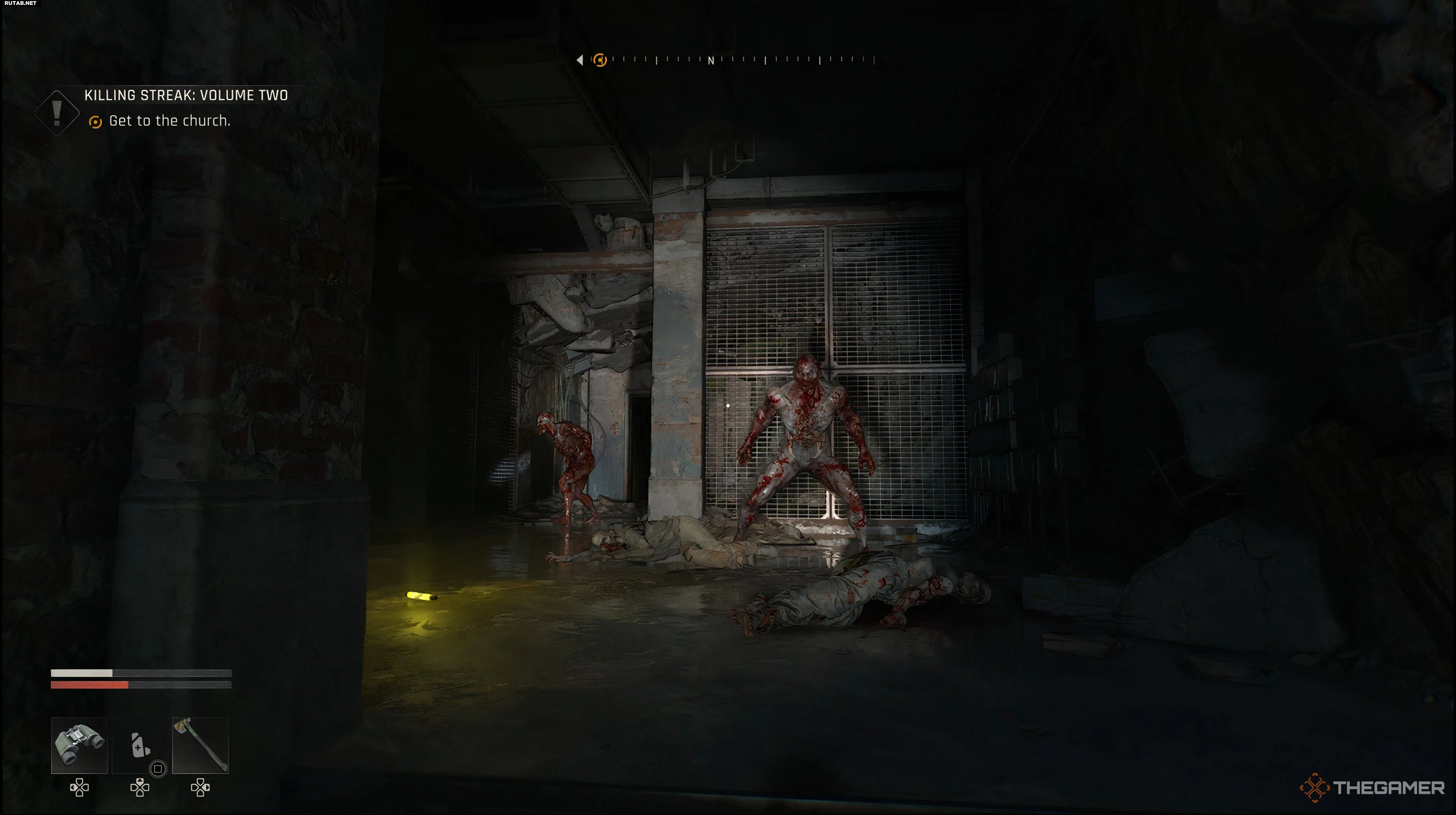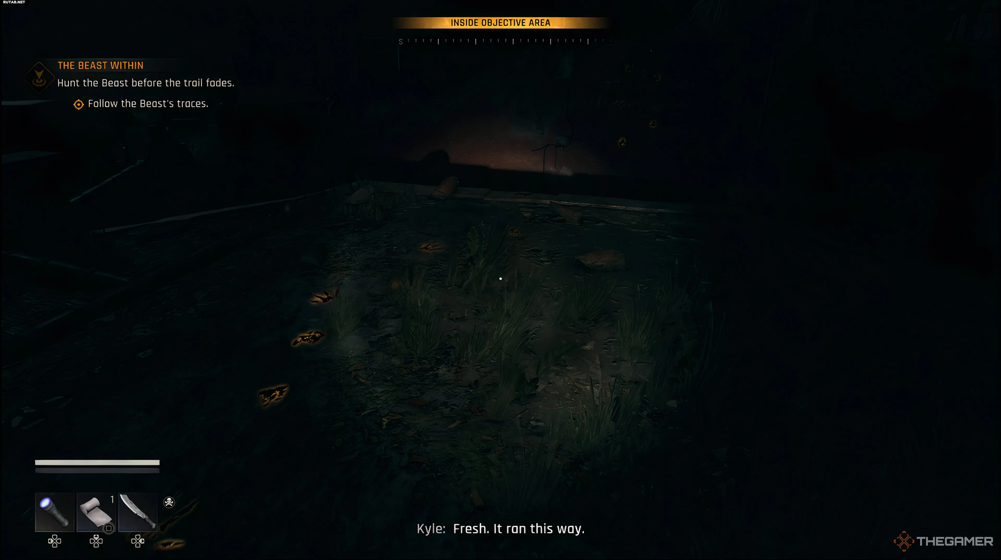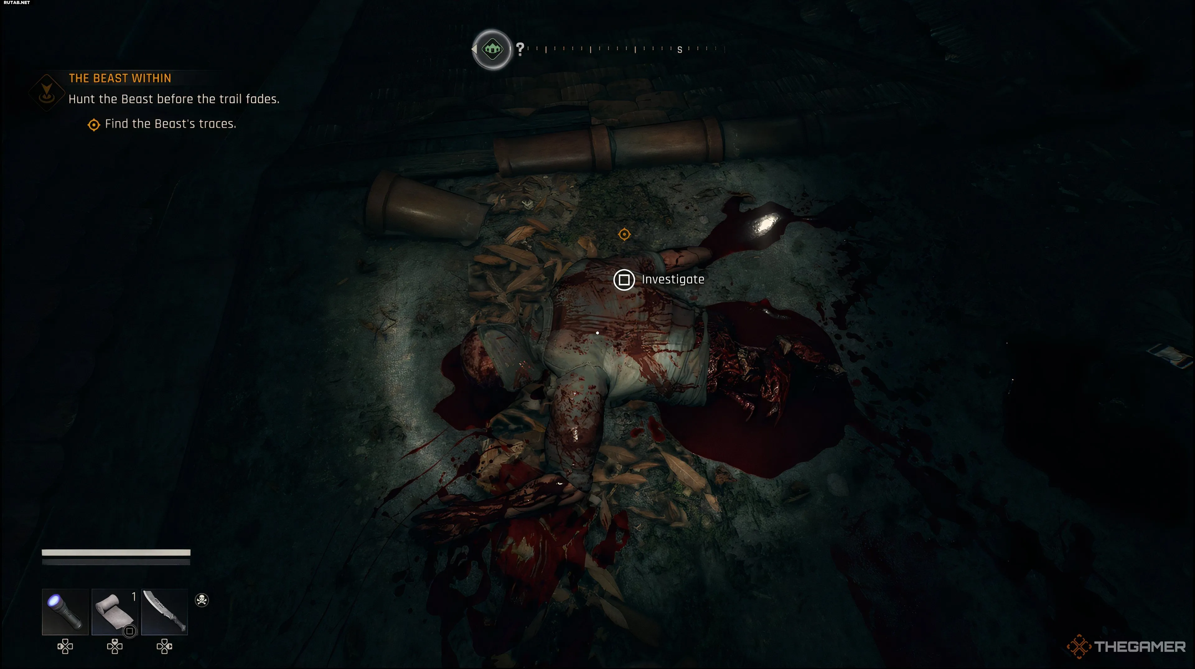 После взаимодействия с телом следующей целью станет отслеживание перемещений Волатайла. При использовании Чувства выжившего следы существа будут подсвечены жёлтым на земле. Следуйте за ними, пока не попадёте внутрь здания.