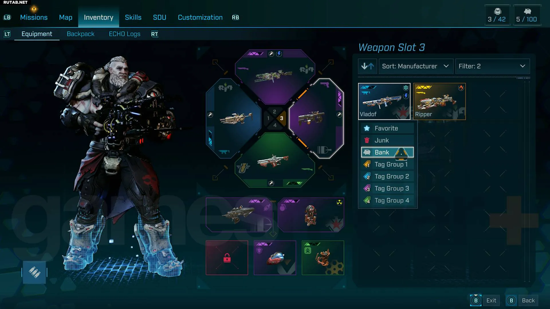 Вместо того чтобы каждый раз ехать к банку, вы можете передавать оружие через систему пометок в инвентаре. Это позволяет быстро избавиться от лишнего груза. Не забывайте, что вы можете улучшить вместимость рюкзака и банка с помощью апгрейдов SDU!