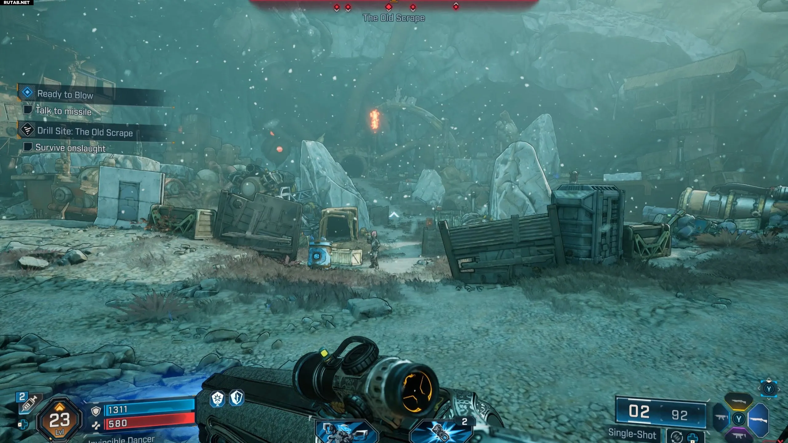 В начале локация сильно заражена Раздирателями (Rippers) и орудийными турелями. Очистив стартовую зону, вы попадете на главную арену босса. На арене полно врагов-Раздирателей, включая Психопата-смертника Королевы (Queen's Suicide Psycho), который будет преследовать вас с вооруженным взрывчаткой.