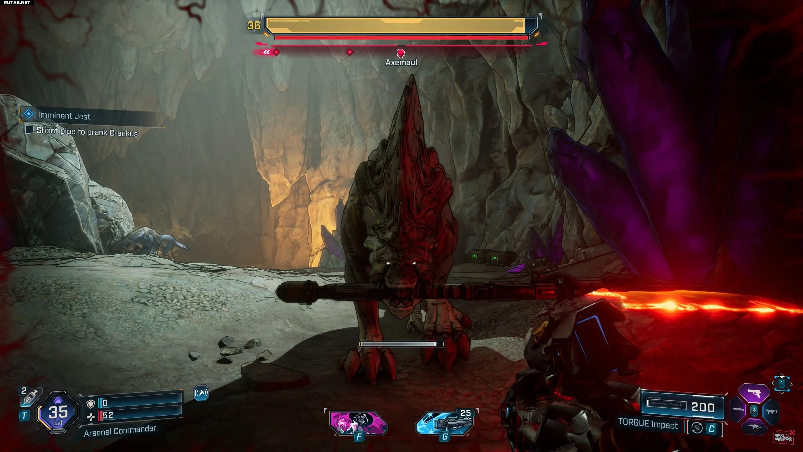 Что касается слабостей Аксеумаля, для его первой полоски здоровья (броня) используйте кислотное/криогенное оружие. Затем переключитесь на зажигательное, так как его вторая полоска здоровья — плоть. Гранатомёт «Жужжащий Топор» является частью легендарных лутов Аксеумаля, так что продолжайте фармить его, если именно это оружие вам нужно.