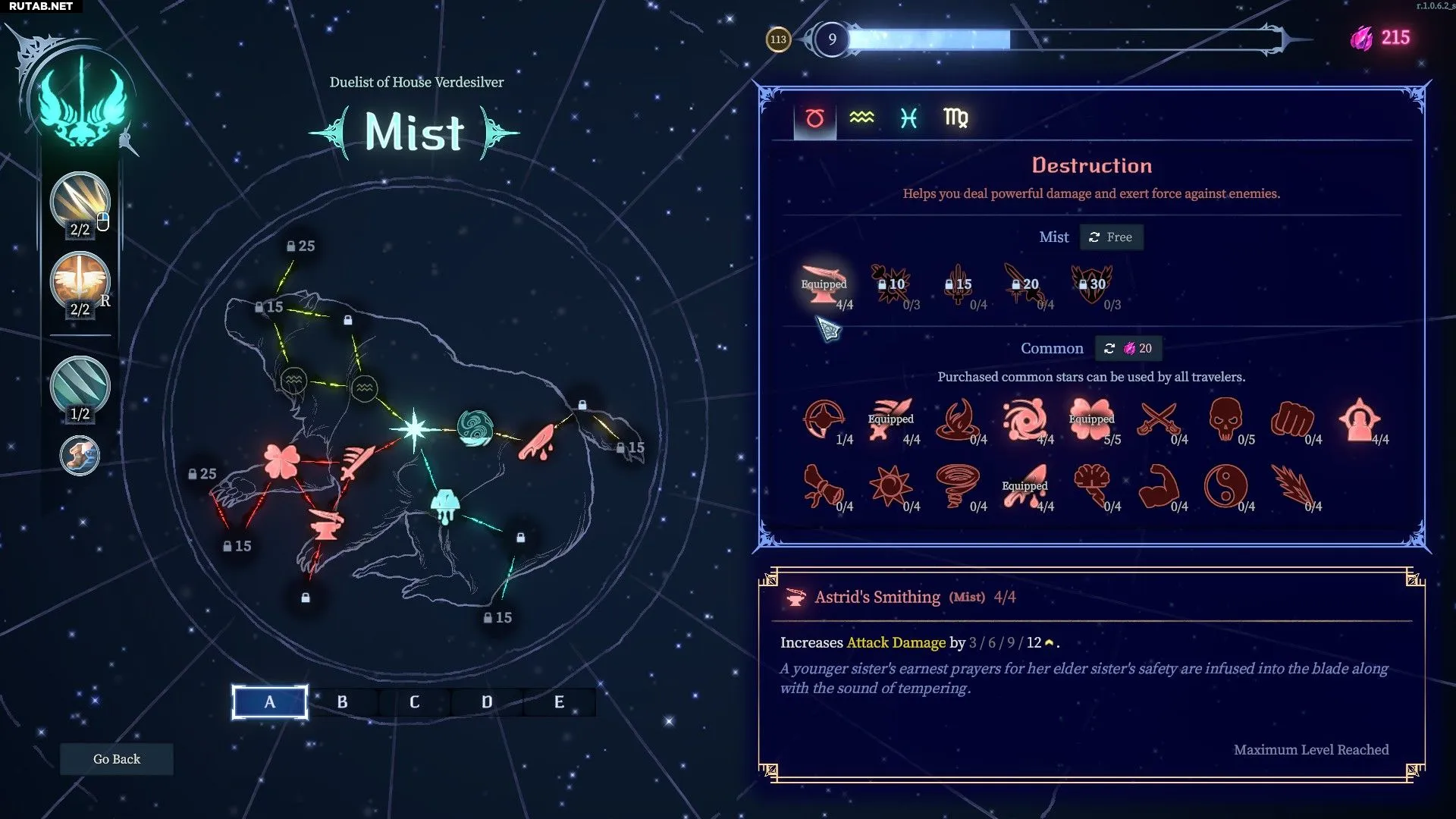Также рекомендуется активировать для Мист следующие Звёзды созвездий: